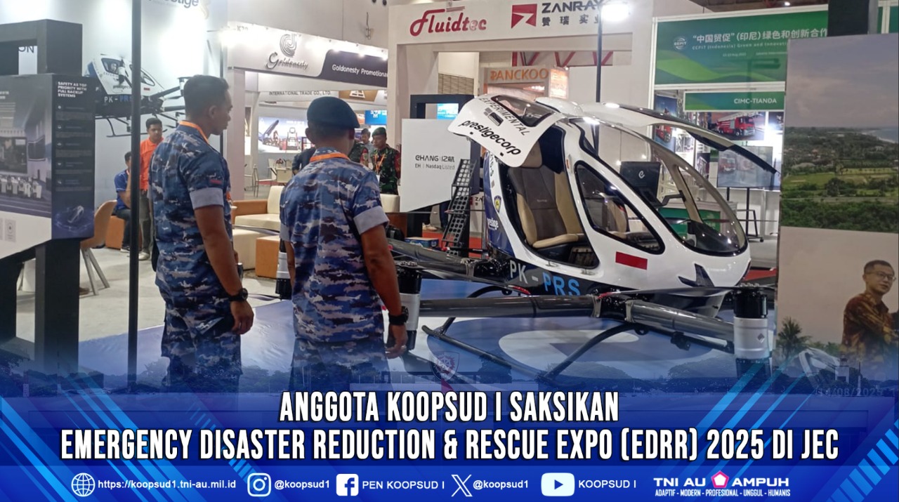 Jakarta, Penkoopsud I. Perwakilan anggota Koops Udara I turut menyaksikan Emergency Disaster Reduction & Rescue Expo (EDRR) 2025 yang diselenggarakan oleh Kementerian Koordinator Bidang Pembangunan Manusia dan Kebudayaan Republik Indonesia bertempat di Jakarta International Expo (JIExpo), Kemayoran, Jakarta, Kamis (14/8/2025).