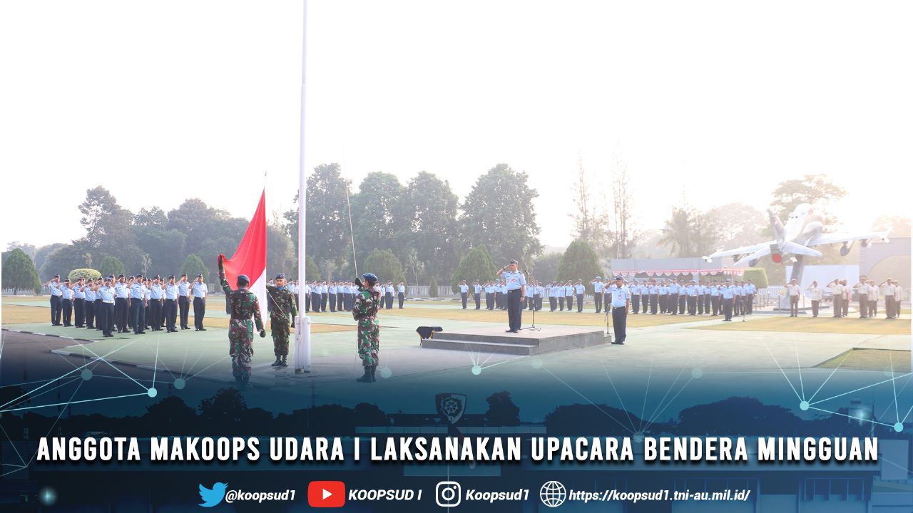 Upacara Bendera yang dilaksanakan setiap hari Senin ini wajib diikuti seluruh personel Makoops Udara I yaitu para Asisten, Sahli dan para Perwira, Bintara, Tamtama serta Pegawai Negri Sipil Makoops Udara I.