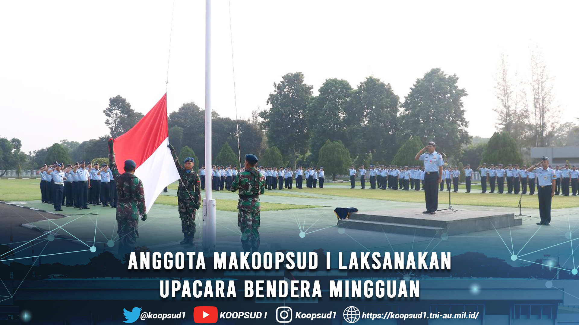 Upacara bendera yang dilaksanakan setiap hari Senin ini wajib diikuti seluruh personel Makoopsud I yaitu para Asisten, Sahli dan para Pejabat Utama Koopsud I, dan juga para Perwira, Bintara, Tamtama serta Pegawai Negeri Sipil Makoopsud I. Pada hari ini upacara yang telah berjalan dengan lancar tidak terlepas dari komando sang Komandan Upacara yaitu Mayor Lek Ugiek Seto Kumoro dan Perwira Upacara Kapten Kal Gatot Susanto