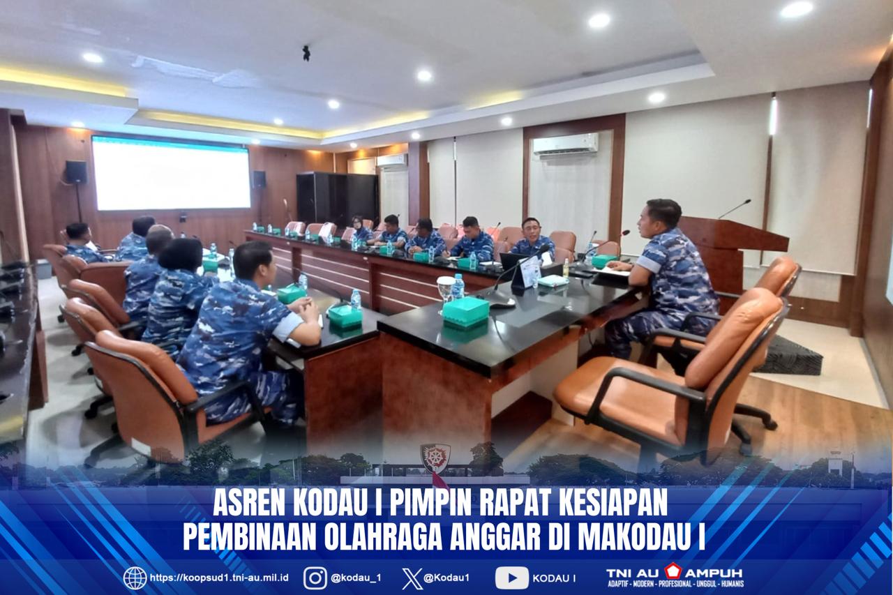 Jakarta, Penkodau I. Asren Kodau I Kolonel Pnb Arie Sulanjana, S.T., M.P.M. selaku Ketua Harian Persatuan Anggar TNI Angkatan Udara pimpin rapat kesiapan Kodau I selaku Pembina Olahraga Anggar TNI Angkatan Udara. Bertempat di Rupat Suryadarma, Makodau I. (Rabu, 1-4-2026)