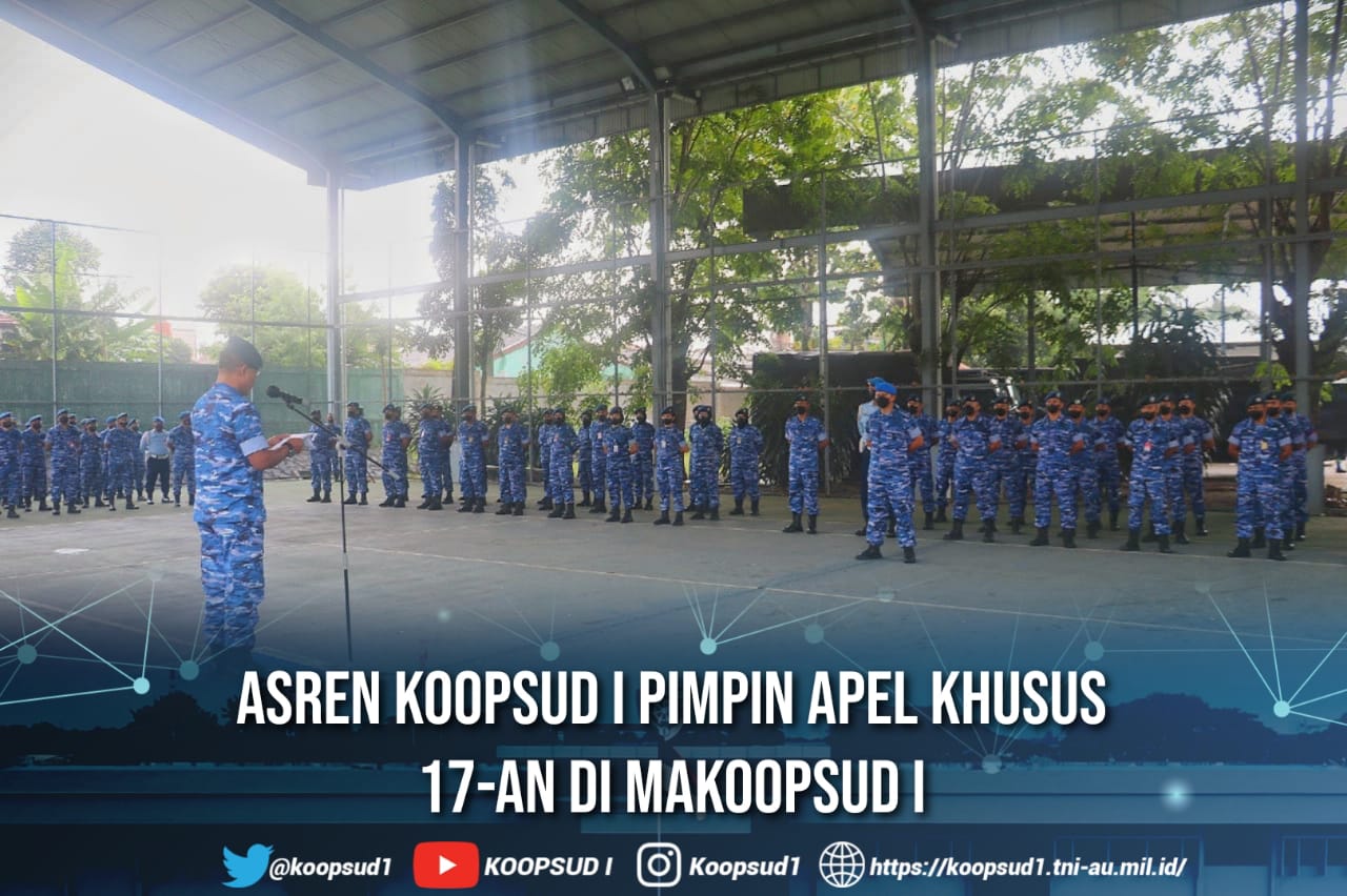 Jakarta, Penkoopsud I. Asren Koopsud I Kolonel Pnb Somad, S.I.P., pimpin Apel Khusus 17-an, bertempat di Lapangan Tenis Makoopsud I. Dihadiri oleh Para Asisten, Kepala Satuan Kerja, Para Perwira, Bintara, Tamtama dan PNS Koopsud I. (Kamis, 17-11-2022).