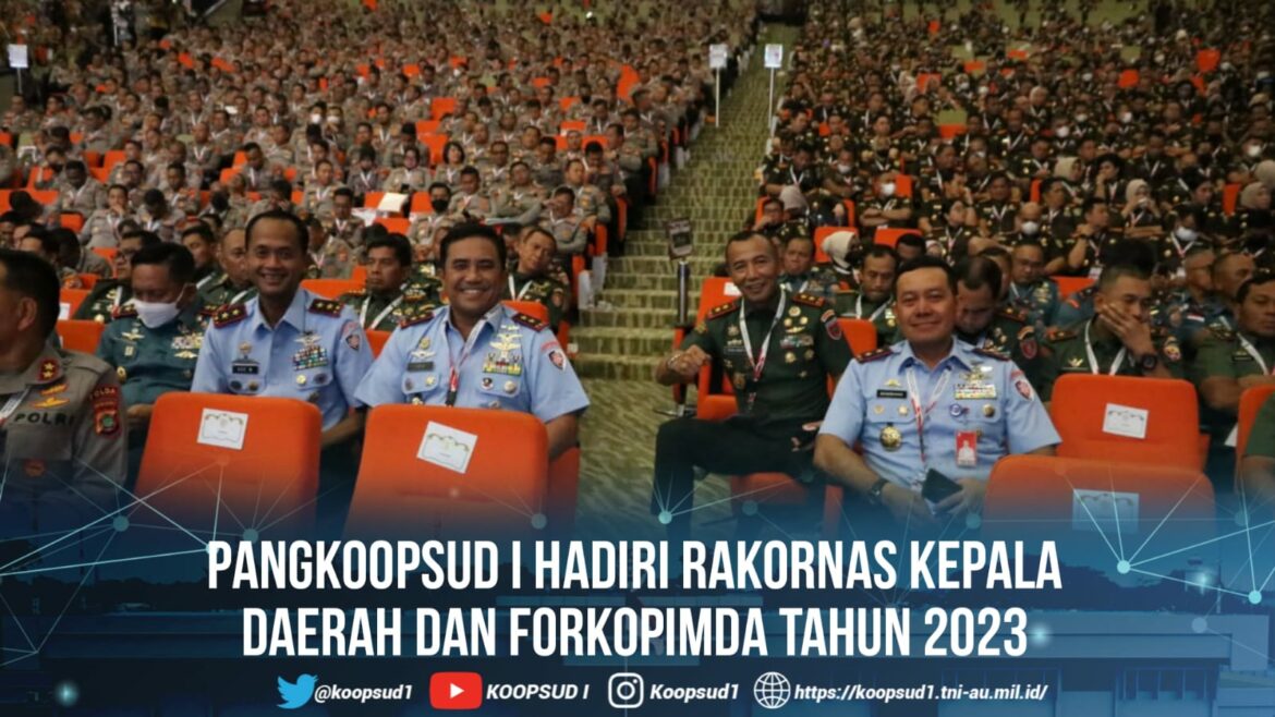 Bogor, Penkoopsud I. Pangkoopsud I Marsda TNI Bambang Gunarto, S.T., M.M., M.Sc., menghadiri Rakornas Kepala Daerah dan Forkopimda Tahun 2023 yang dipimpin langsung oleh Presiden Republik Indonesia Ir. Joko Widodo sekaligus membuka secara resmi Rakornas tersebut. Bertempat Sentul Convention Centre (SICC), Bogor. (Selasa, 17-1-2023).