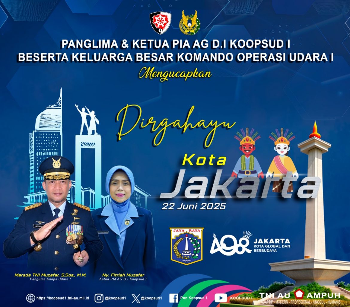 Jakarta.Penkoopsud I. Kejutan istimewa dari udara, Kediaman Kapolda Metro Jaya Irjen Pol Karyoto., S.I.K., dipagi hari digeruduk Panglima Koops Udara I Marsda TNI Muzafar., S.Sos., M.M., yang penuh kebahagian mewarnai peringatan Hari Ulang Tahun ke-79 Bhayangkara, bertempat di Kediaman Kapolda Jl.Teuku Umar Menteng Jakarta Pusat, Selasa (1/7/25).