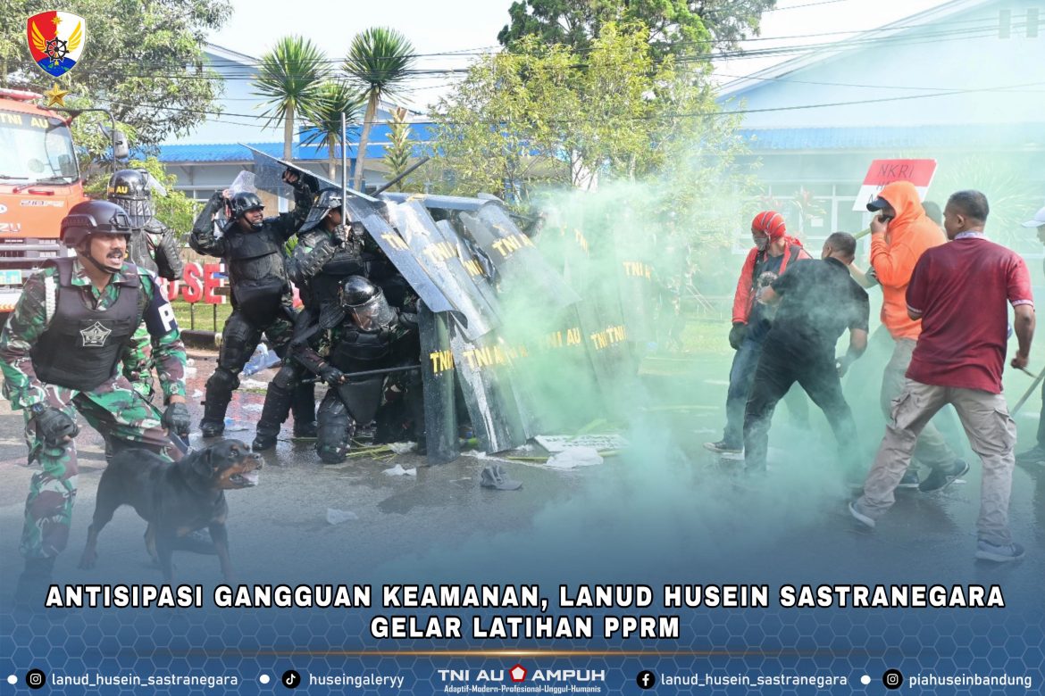 Bandung — Pangkalan TNI Angkatan Udara (Lanud) Husein Sastranegara menggelar Latihan Pasukan Penindak Rusuh Massa (PPRM) untuk meningkatkan kesiapsiagaan personel dalam menghadapi potensi gangguan keamanan di lingkungan pangkalan, Selasa (10/2/2026).