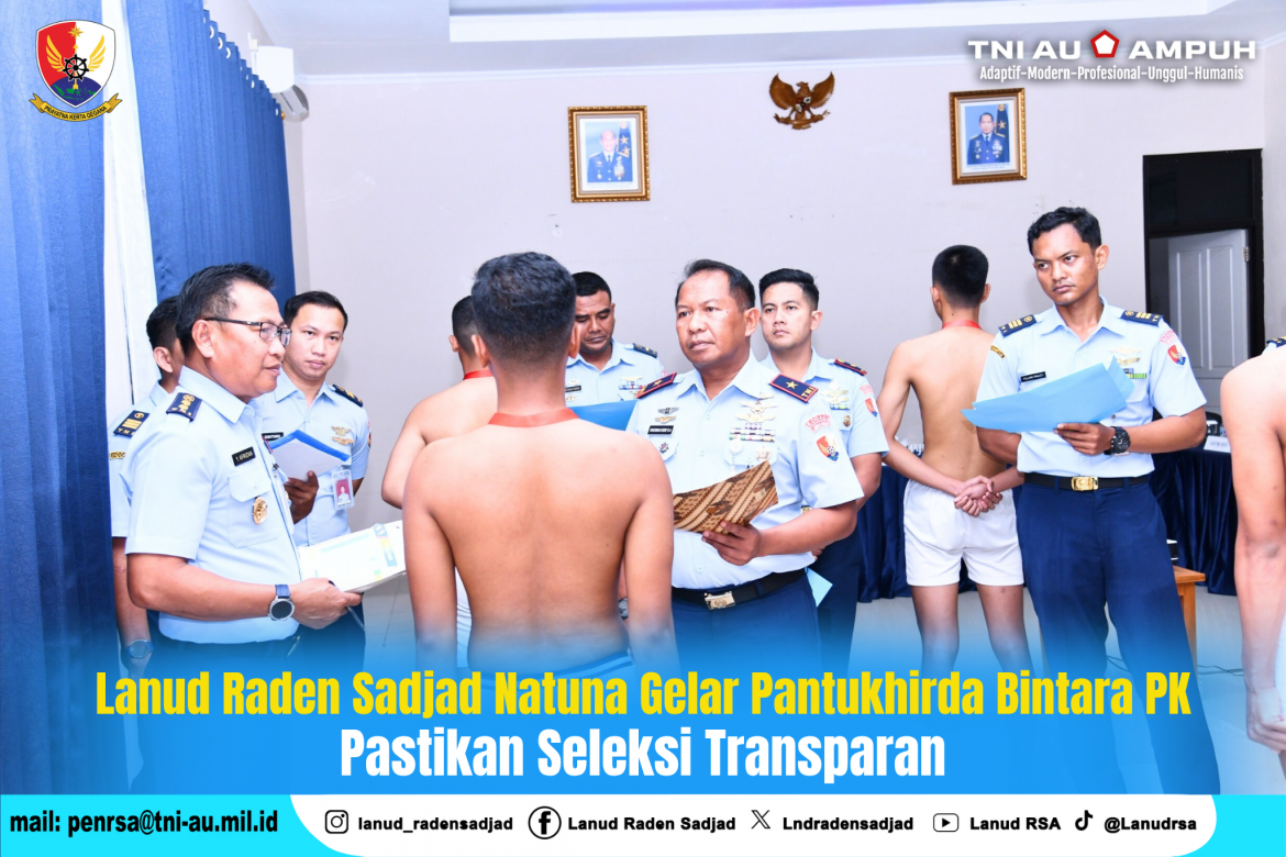 Sementara itu, Kadispers Lanud RSA Letkol Adm Yuli Afrizan, S.Sos., selaku Wakil Ketua Pantukhirda menambahkan, seleksi tetap memberi perhatian bagi putra daerah Natuna yang memenuhi ketentuan. Seluruh hasil sidang ditetapkan bersama unsur panitia dan tim penguji.