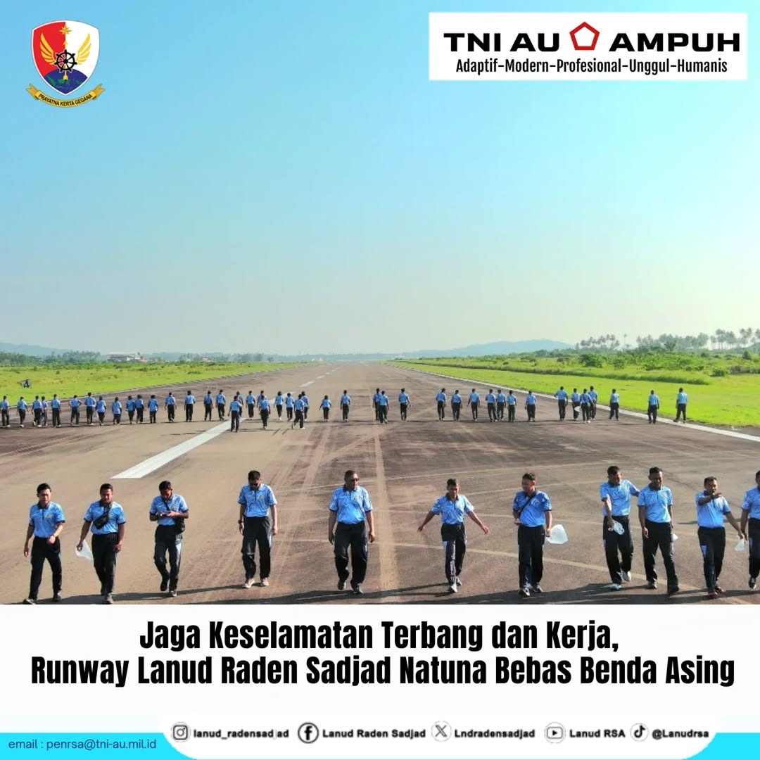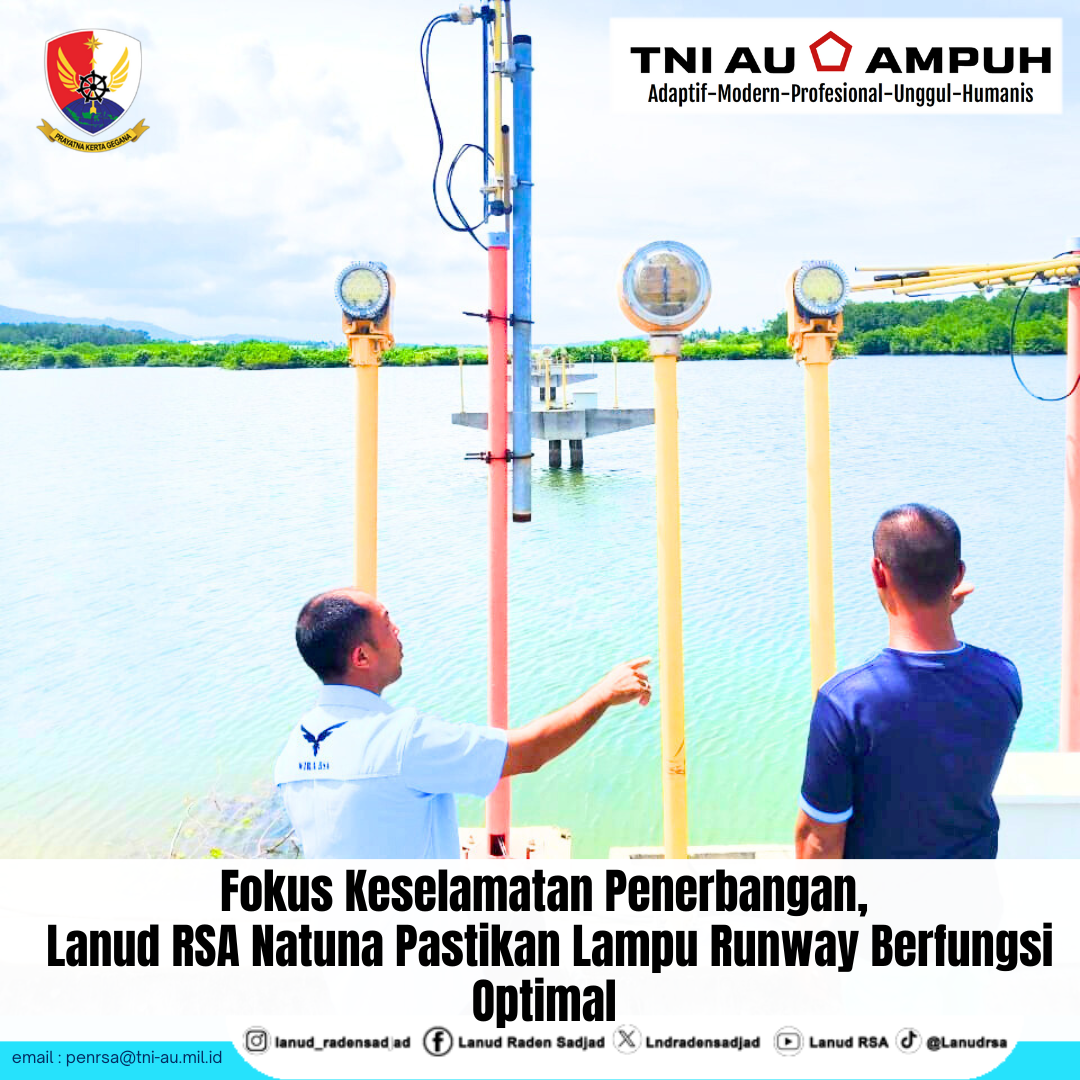 Lanud Raden Sadjad (RSA) melakukan perbaikan Approach Light dan Runway Light sebagai langkah strategis menjaga keselamatan penerbangan militer maupun sipil di Lanud RSA Natuna, Provinsi Kepulauan Riau, Senin (4/8/2025).