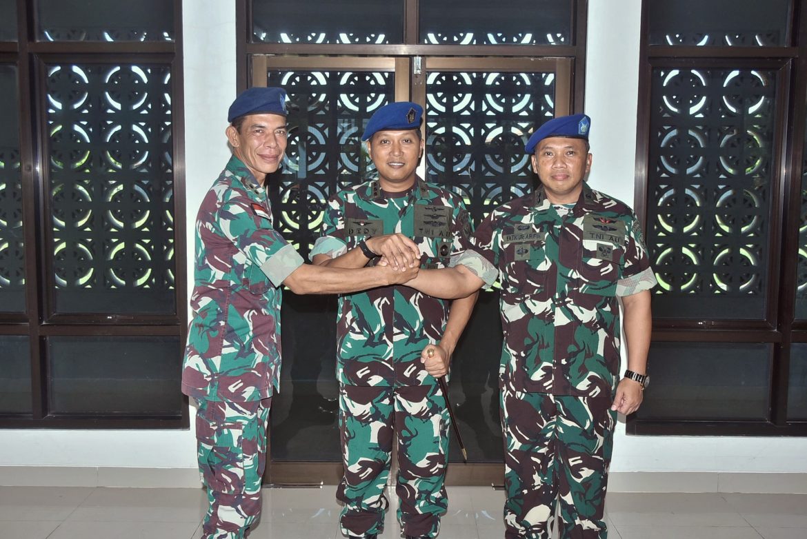 Komandan Lanud Raden Sadjad (RSA) Natuna, Kolonel Pnb Dedy Iskandar, S.Sos., M.M.S., M.Han., memimpin Serah terima jabatan (Sertijab) Kepala Dinas Logistik (Kadislog) Lanud RSA di Lobby Mako Lanud RSA Natuna, Provinsi Kepulauan Riau, Jumat (26/4/2024).