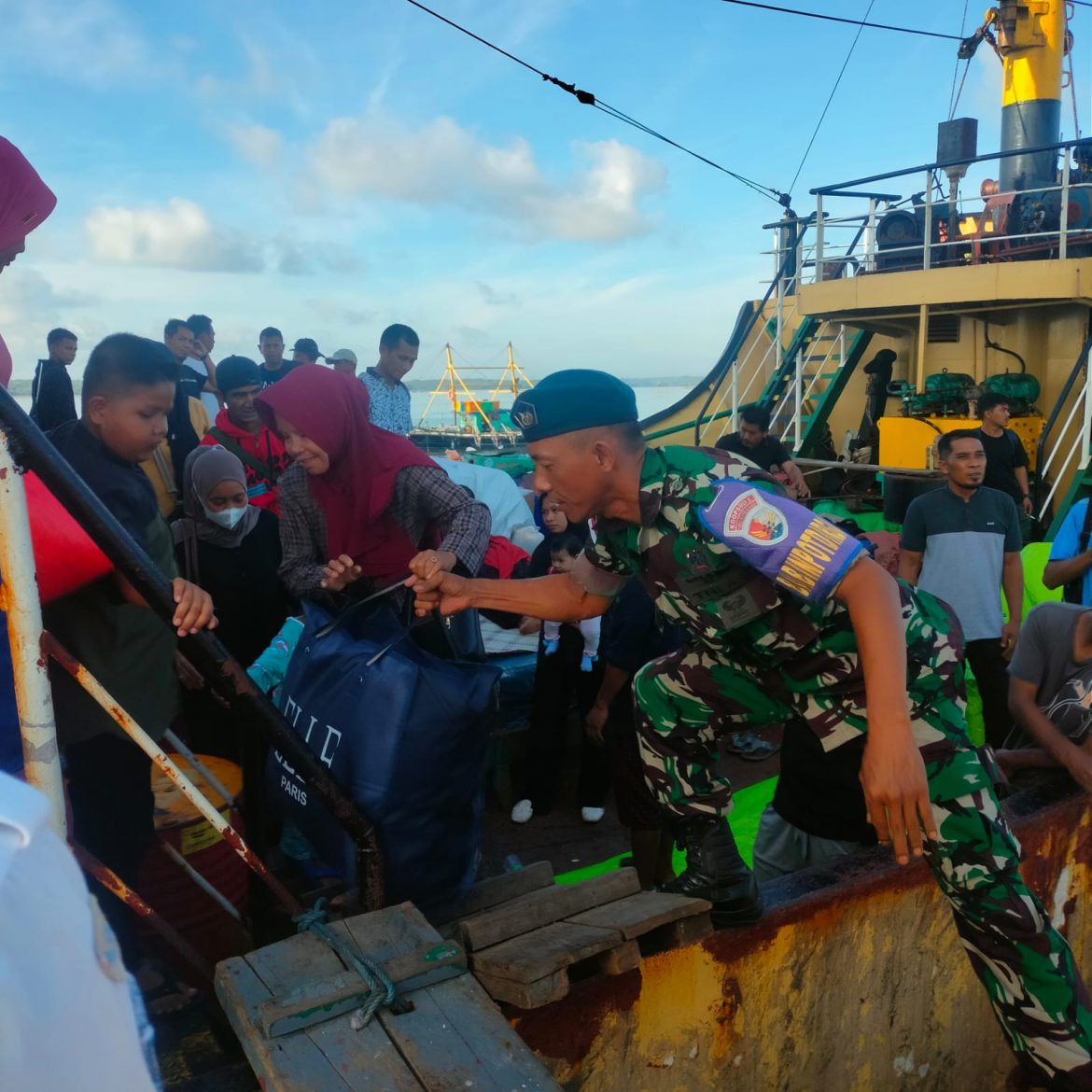 Bintara Pembina Potensi Dirgantara (Babinpotdirga) TNI AU Lanud Raden Sadjad (RSA) Natuna terus bersinergi dengan instansi terkait dalam melaksanakan pengamanan dan monitoring terhadap penumpang Turun dan Naik KM. Sabuk Nusantara 36 di Pelabuhan Ranai Jl. Tanjung Payung Penagi, Kelurahan Batu Hitam, Kecamatan Bunguran Timur, Kabupaten Natuna, Rabu (17/4/2024).