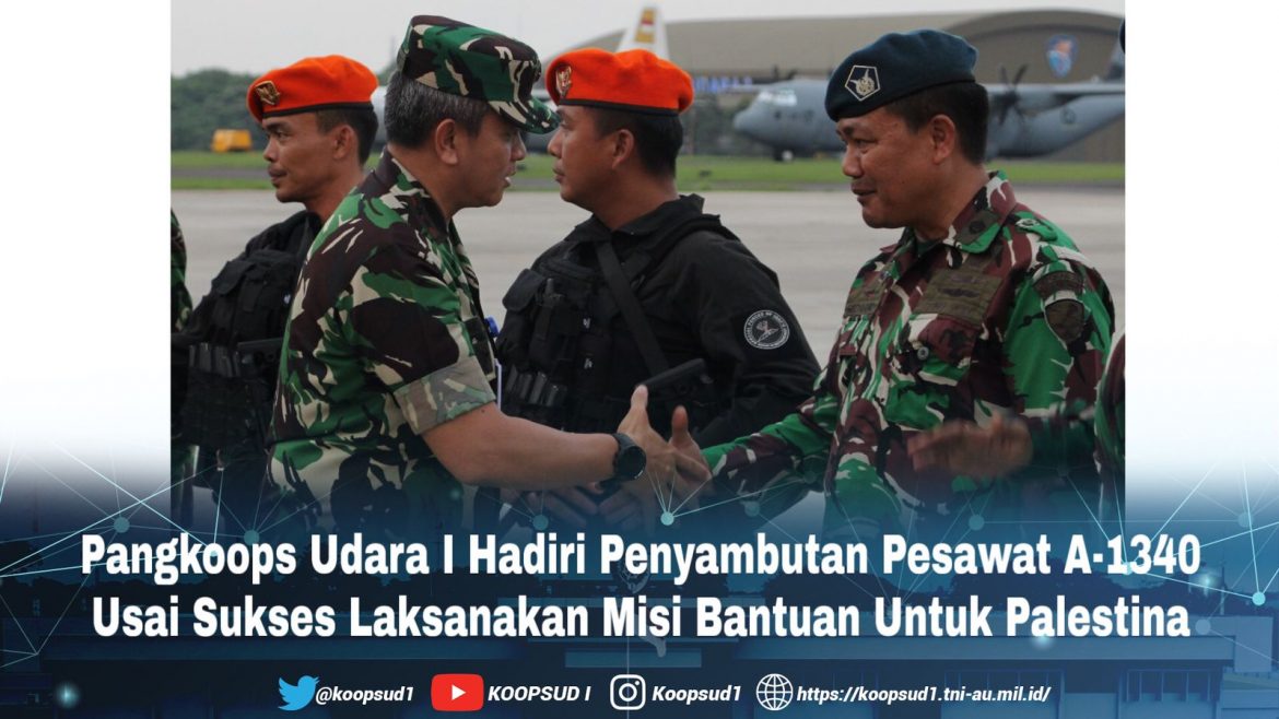 Pangkoops Udara I Hadiri Penyambutan Pesawat A-1340 Usai Sukses Laksanakan Misi Bantuan untuk Palestina.