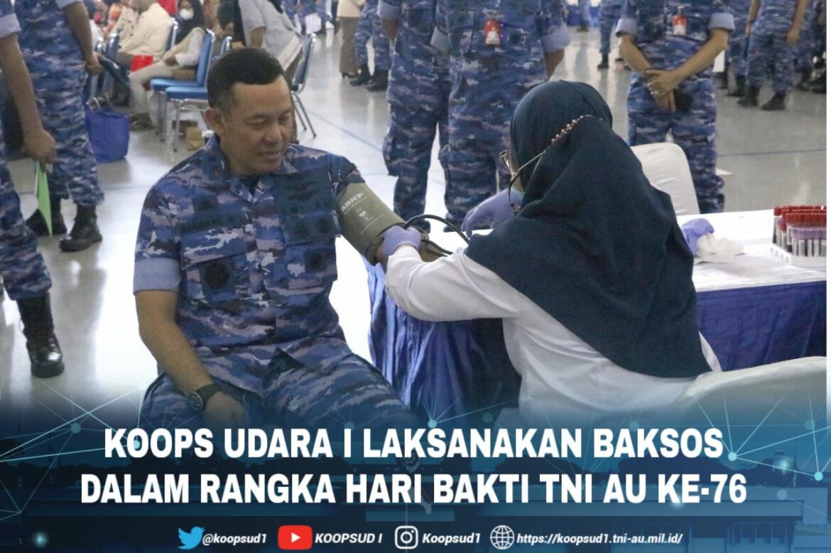 Dalam rangka memperingati Hari Bakti TNI Angkatan Udara ke-76 yang jatuh pada tanggal 29 Juli ini, Koops Udara I menyelenggarakan beberapa kegiatan salah satunya melaksanakan ziarah ke TMP Karet Bivak, menggelar donor darah dan penyerahan bantuan sosial yang berlangsung di Gedung Olah Raga Antarikshe Makoops Udara I. Kegiatan ini dilaksanakan dengan tujuan untuk mengenang jasa para pahlawan yang telah gugur di medan tugas demi membela, mempertahankan Bangsa dan Negara Kesatuan Republik Indonesia, serta mengingatkan kembali kepada generasi penerus khususnya TNI AU dan TNI pada umumnya atas jasa-jasa pahlawan di masa lalu.