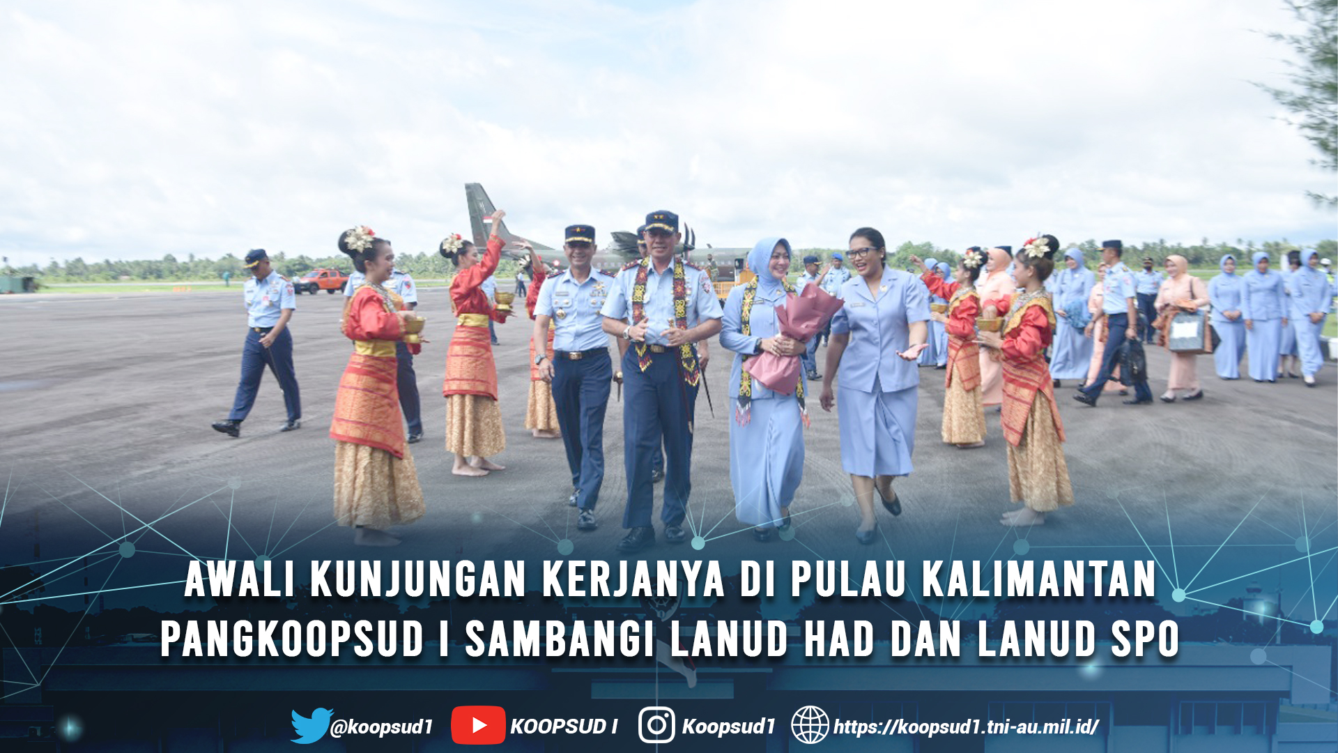 Jakarta, Penkoopsud I. Mengawali kunjungan kerjanya di Pulau Kalimantan, Pangkoopsud I Marsda TNI Bambang Gunarto, S.T., M.M., M.Sc., beserta Ketua PIA Ardhya Garini Daerah I Koopsud I Ny. Mala Bambang Gunarto menyambangi Lanud Harry Hadisoemantri, Bengkayang, Kalimantan Barat dan Lanud Supadio, Pontianak, Kalimantan Timur. (Kamis–Jumat, 27/28-10-2022).