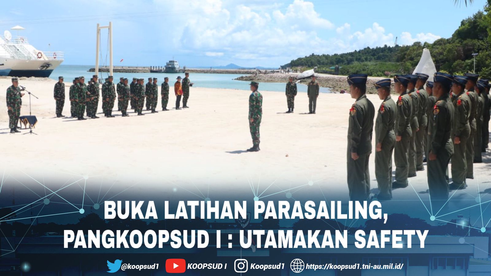 TNI AU, Penkoopsud I. “Utamakan safety dalam setiap tahap latihan yang dilaksanakan”, demikian ditekankan Panglima Koops Udara I Marsda TNI Mohammad Nurdin saat membuka Latihan Parasailing Koops Udara I TA 2024 bertempat di Kepri Koral, Batam, Rabu (1/5/2024).