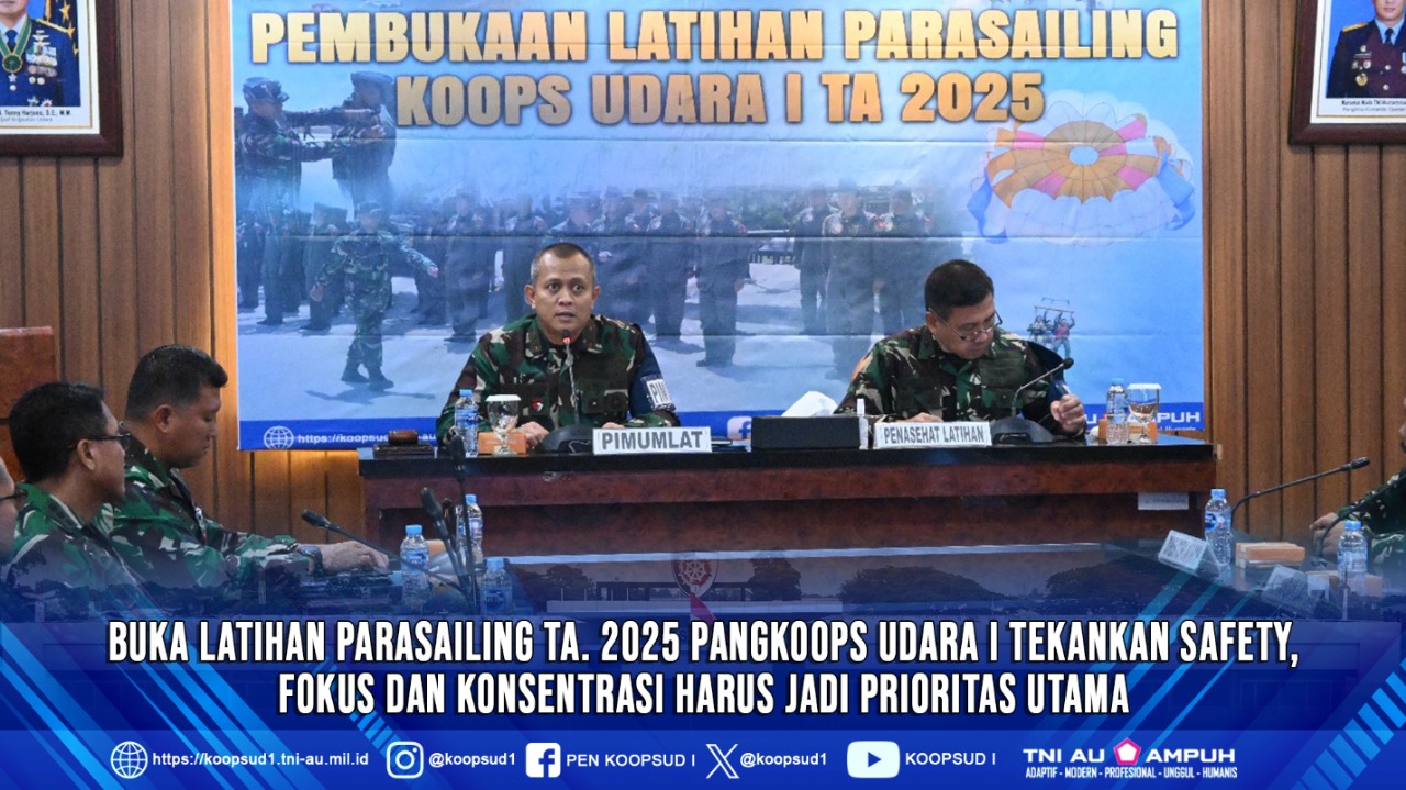 Home Berita Buka Latihan Parasailing TA. 2025 Pangkoops Udara I Tekankan Safety, Fokus dan Konsentrasi Harus Jadi Prioritas Utama