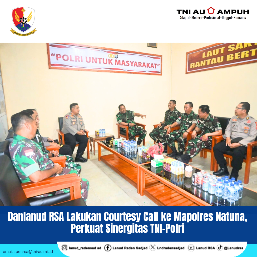 Kunjungan tersebut didampingi para pejabat List A Lanud RSA dan disambut hangat oleh Kapolres Natuna, AKBP Novyan Aries Efendie, S.H., S.I.K., M.M., M.Tr.Opsla, beserta jajaran.