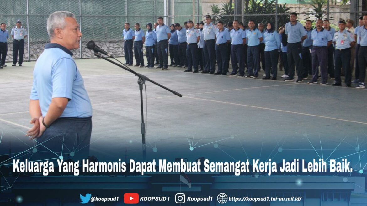 Jakarta, Penkoopsud I. “Keluarga yang Harmonis adalah pilar penopang terlaksananya tugas pokok dalam kedinasan. Sehingga dapat membuat semangat kerja jadi lebih baik karena adanya ketenangan dan kedamaian dalam kehidupan berumah-tangganya” demikian dijelaskan oleh Kabintalid Koops Udara I Letkol Sus Sakdun, S.Ag., M.Pd.I., saat memberikan ceramah Bintal Fungsi Komando (BFK) kepada seluruh personel Makoops Udara I setelah pelaksanaan Apel Pagi. Bertempat di Lapangan Tenis Indoor Makoops Udara I. (Kamis, 29-2-2024).