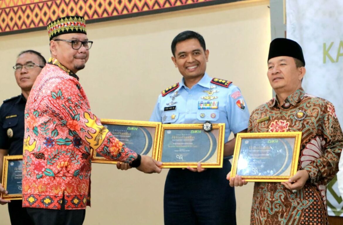 Penganugerahan penghargaan diterima langsung Komandan Pangkalan TNI AU Pangeran M. Bun Yamin (Danlanud BNY) Letkol Pnb Yosi Hadi Wiyanto dari Kepala Kantor Wilayah DJKN Lampung dan Bengkulu Dudung Rudi Hendratna, S.E., Ak., M.M., di Balai Penjamin Pendidikan, Pahoman, Tanjung Karang, Bandar Lampung, Kamis (22/2/2024).