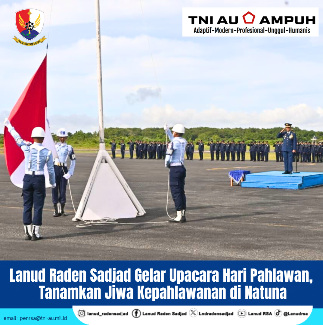 Sebanyak 54 siswa-siswi SMA Negeri 2 Bunguran Timur memberikan kejutan (surprise) pada peringatan Hari Pahlawan di Lanud Raden Sadjad (RSA), Kabupaten Natuna, Provinsi Kepulauan Riau, Senin (10/11/2025).