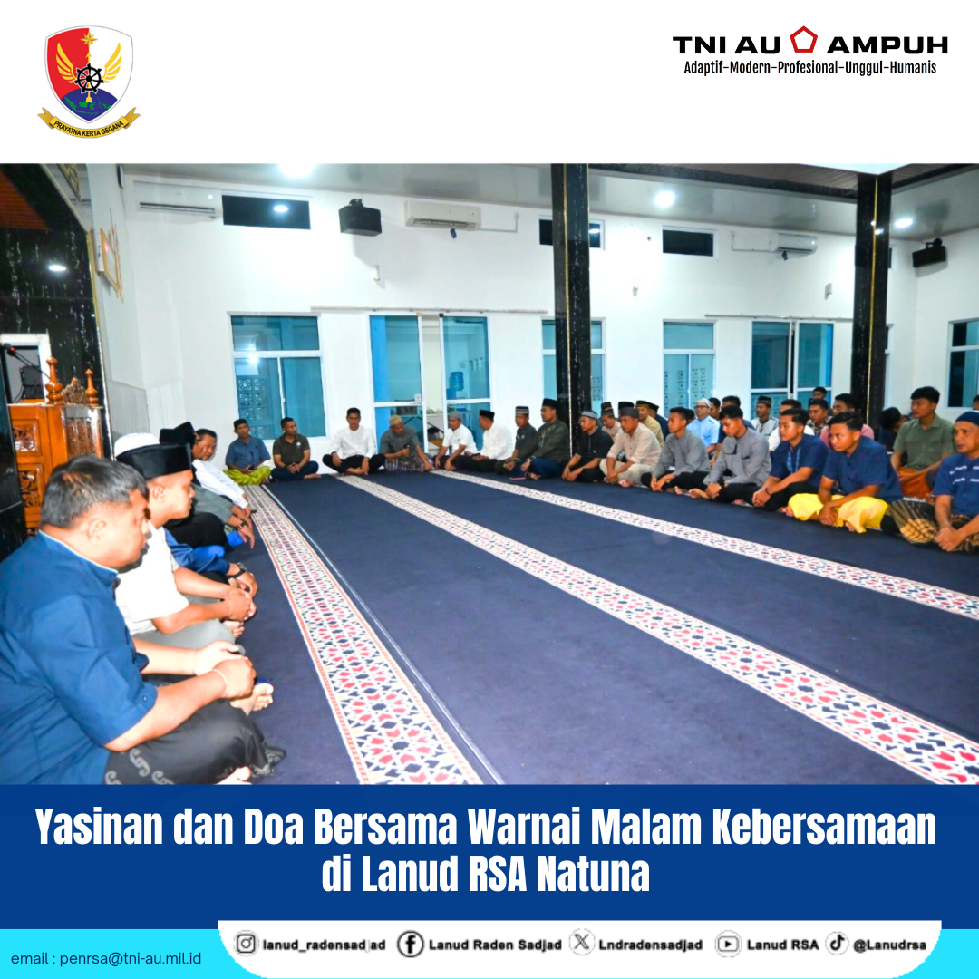 Kegiatan dihadiri Komandan Lanud RSA (Danlanud RSA) Marsekal Pertama TNI Onesmus Gede Rai Aryadi, S.E., M.M., M.Han., bersama Ketua PIA AG Cabang 9/D.I Ny. Marni Onesmus Pasaribu, serta pejabat di lingkungan Lanud RSA.