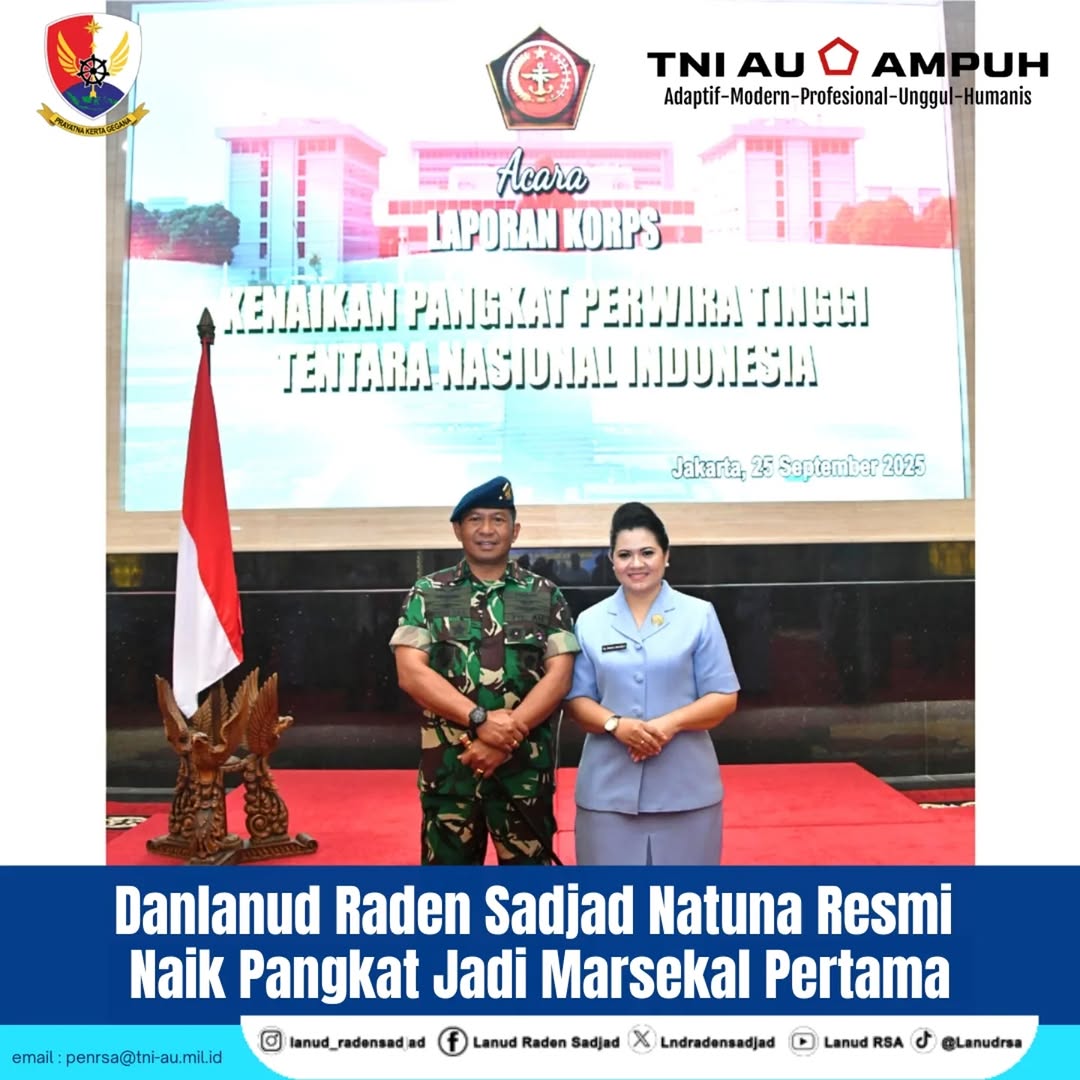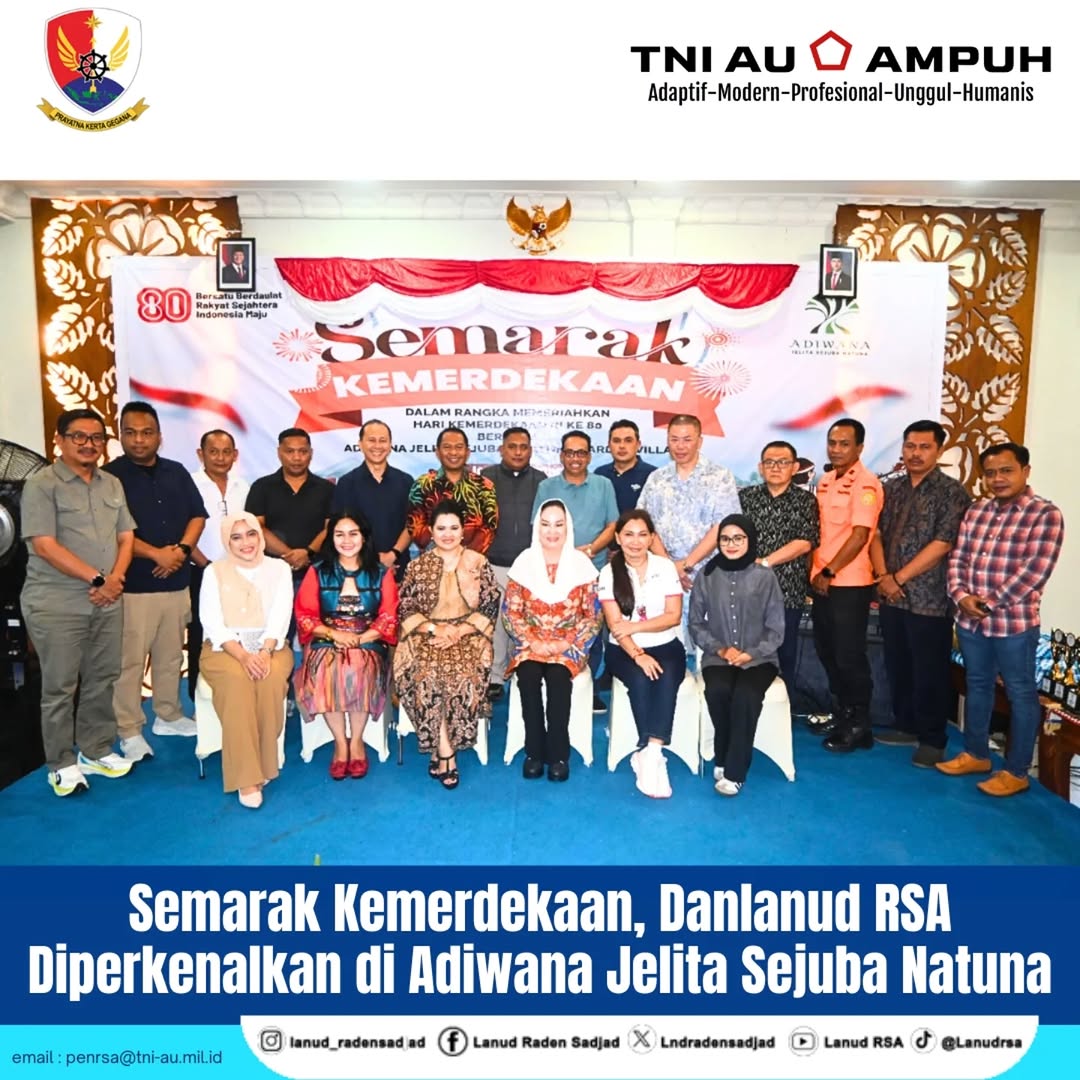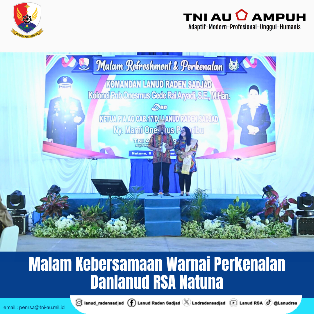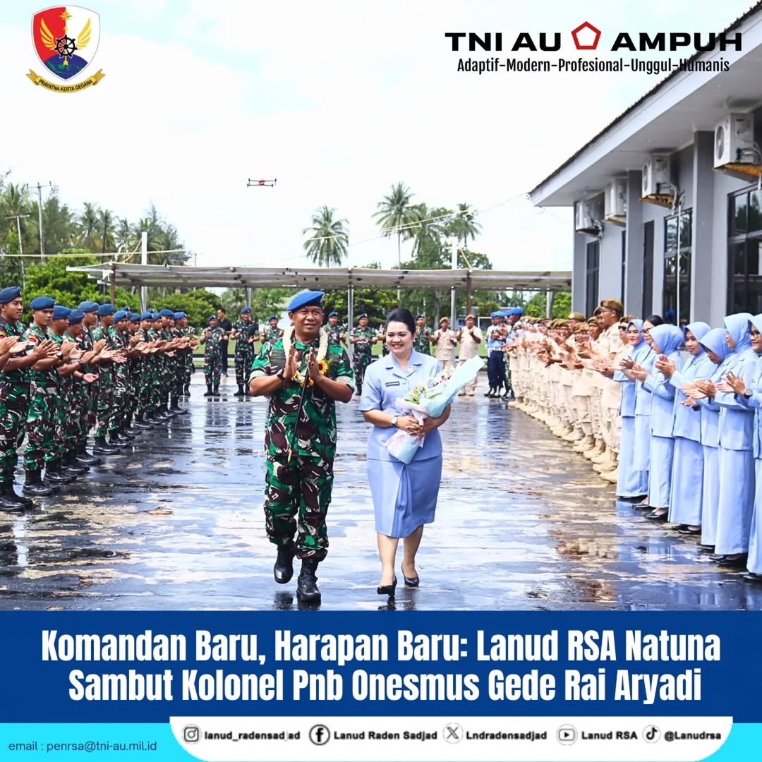 Dalam acara tersebut, Komandan Lanud Raden Sadjad (RSA) Natuna, Onesmus Gede Rai Aryadi, S.E., M.M., M.Han., resmi menyandang pangkat Marsekal Pertama (Marsma) TNI didampingi Ketua PIA Ardhya Garini Cabang 17/D.I Lanud RSA, Ny. Marni Onesmus Pasaribu.