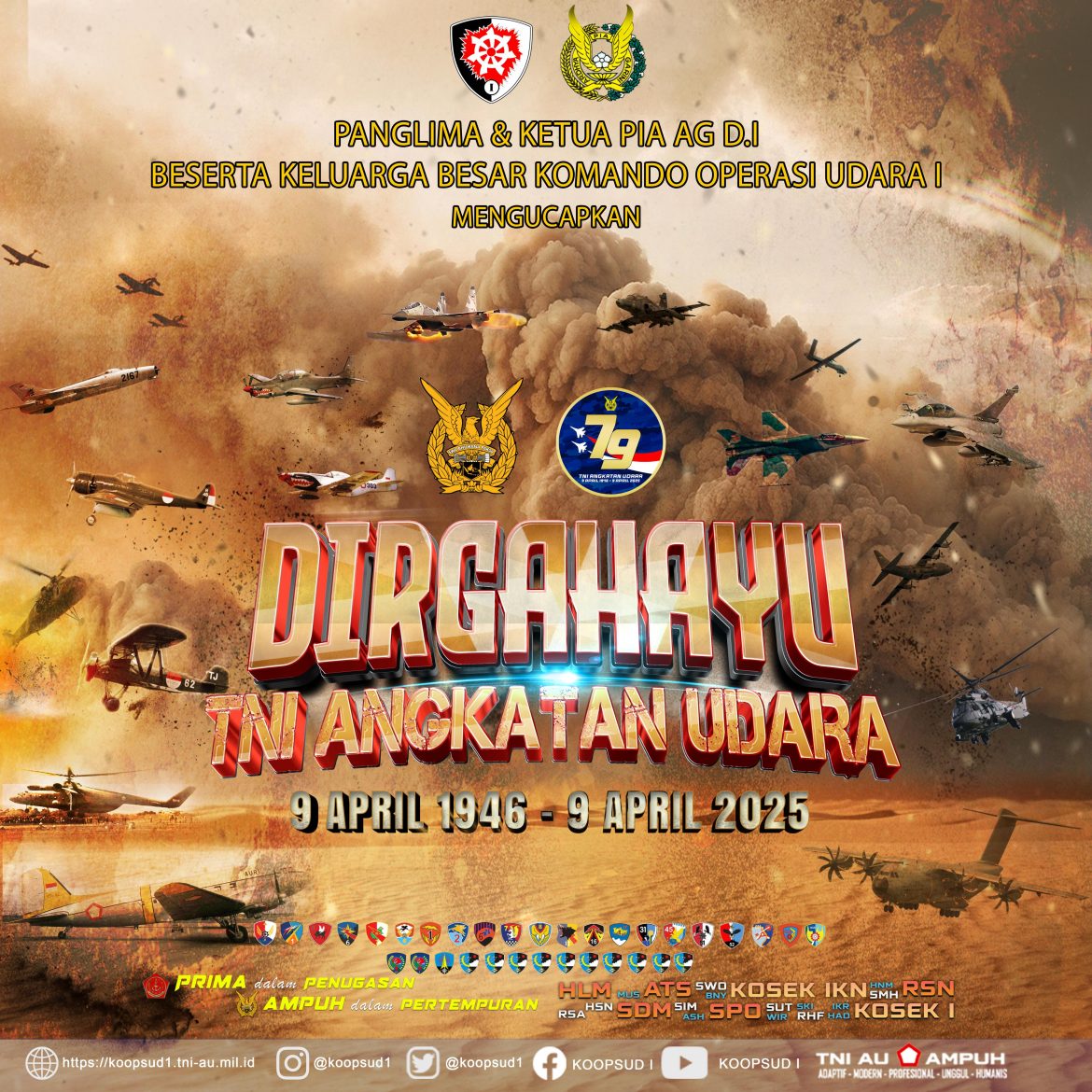 Panglima Komando Operasi Udara I & Ketua PIA AG Daerah I Koopsud I beserta Keluarga Besar Koops Udara I mengucapkan
