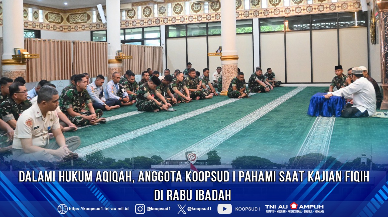 Hadir pada Kajian Fiqih di Rabu Ibadah antara lain Kaskoopsud I Marsma TNI Prasetiya Halim, S.H., para Pejabat Utama, Perwira, Bintara, Tamtama dan Pegawai Negeri Sipil anggota muslim Makoopsud I.