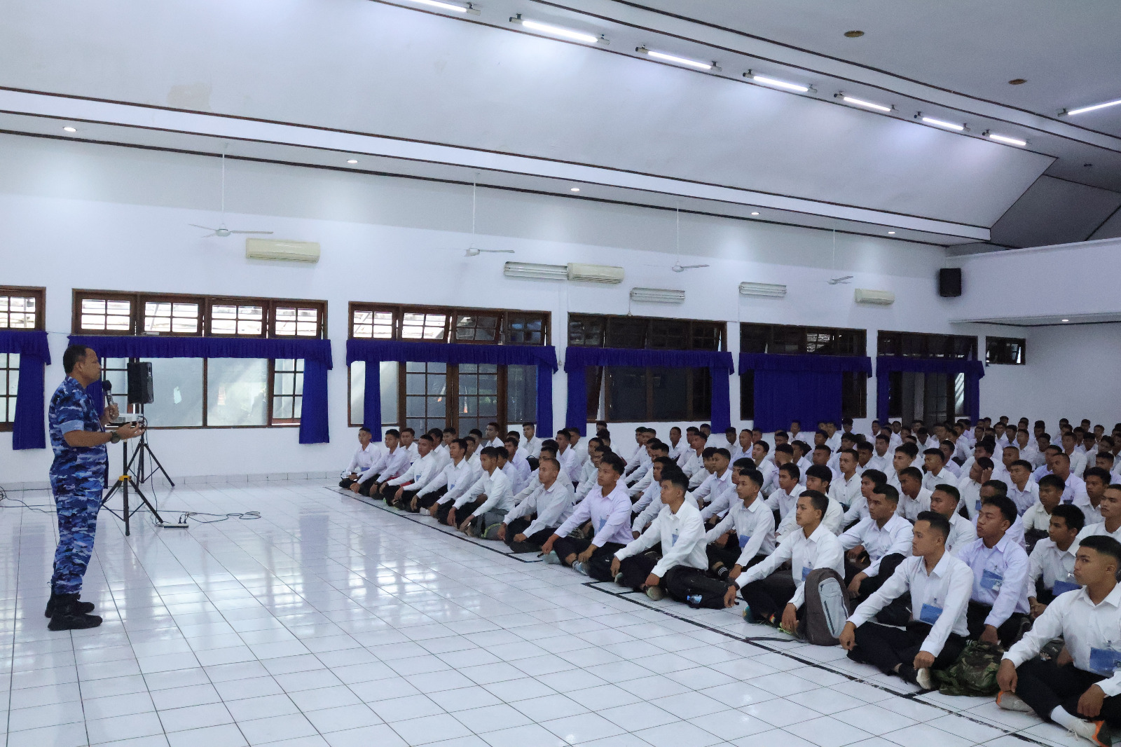 Bandung — Komandan Lanud Husein Sastranegara Marsma TNI MD. Irman Fathurrahman, S.E., M.M., didampingi Kadispers Kolonel Adm Ade Prihanto memberikan motivasi kepada para Calon Siswa (Casis) Bintara Pria TNI Angkatan Udara Angkatan ke-57 Gelombang I Tahun 2026, kegiatan pengarahan dilaksanakan di Gedung Graha Antariksa, (02/12/2026). Kegiatan ini bertujuan untuk membangkitkan semangat, mental juang, serta kesiapan para casis dalam menghadapi tahapan seleksi yang akan dilalui.
