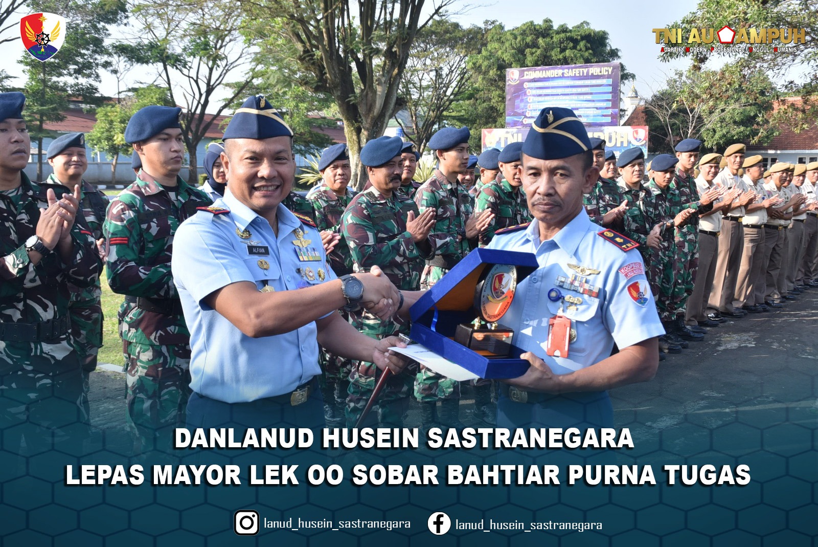 Komandan Lanud Husein Sastranegara Kolonel Pnb Alfian, S.E., memimpin langsung acara pelepasan Purna Bakti yang digelar secara sederhana kepada Mayor Lek Oo Sobar Bahtiar yang sebelumnya menjabat sebagai Komandan Satuan Pertahanan Pangkalan (Dansathanlan) yang telah mengabdi di TNI Angkatan Udara selama kurang lebih 35 Tahun, dari mulai berpangkat Prada sampai menjadi Pamen Mayor.