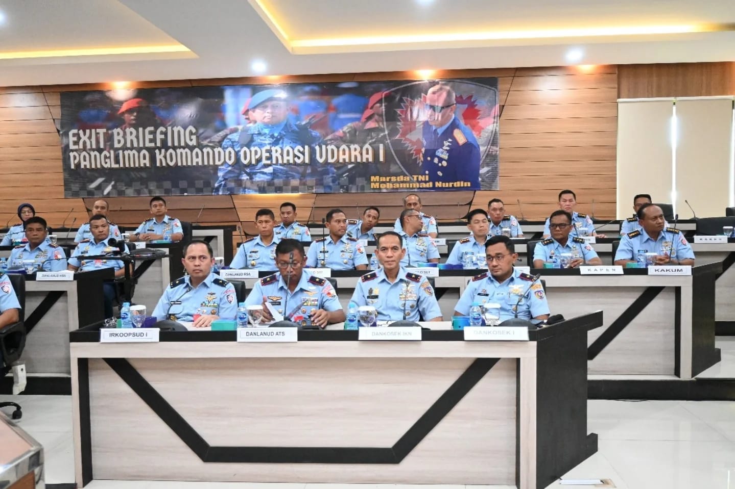 Komandan Lanud Raden Sadjad (RSA) Natuna, Kolonel Pnb I Ketut Adiyasa Ambara menghadiri Exit Briefing Panglima Komando Operasi Udara I (Pangkoopsud I) Marsda TNI Mohammad Nurdin. Acara berlangsung di Ruang Yudha, Makoopsud I, Jakarta, Jumat (9/5/2025).