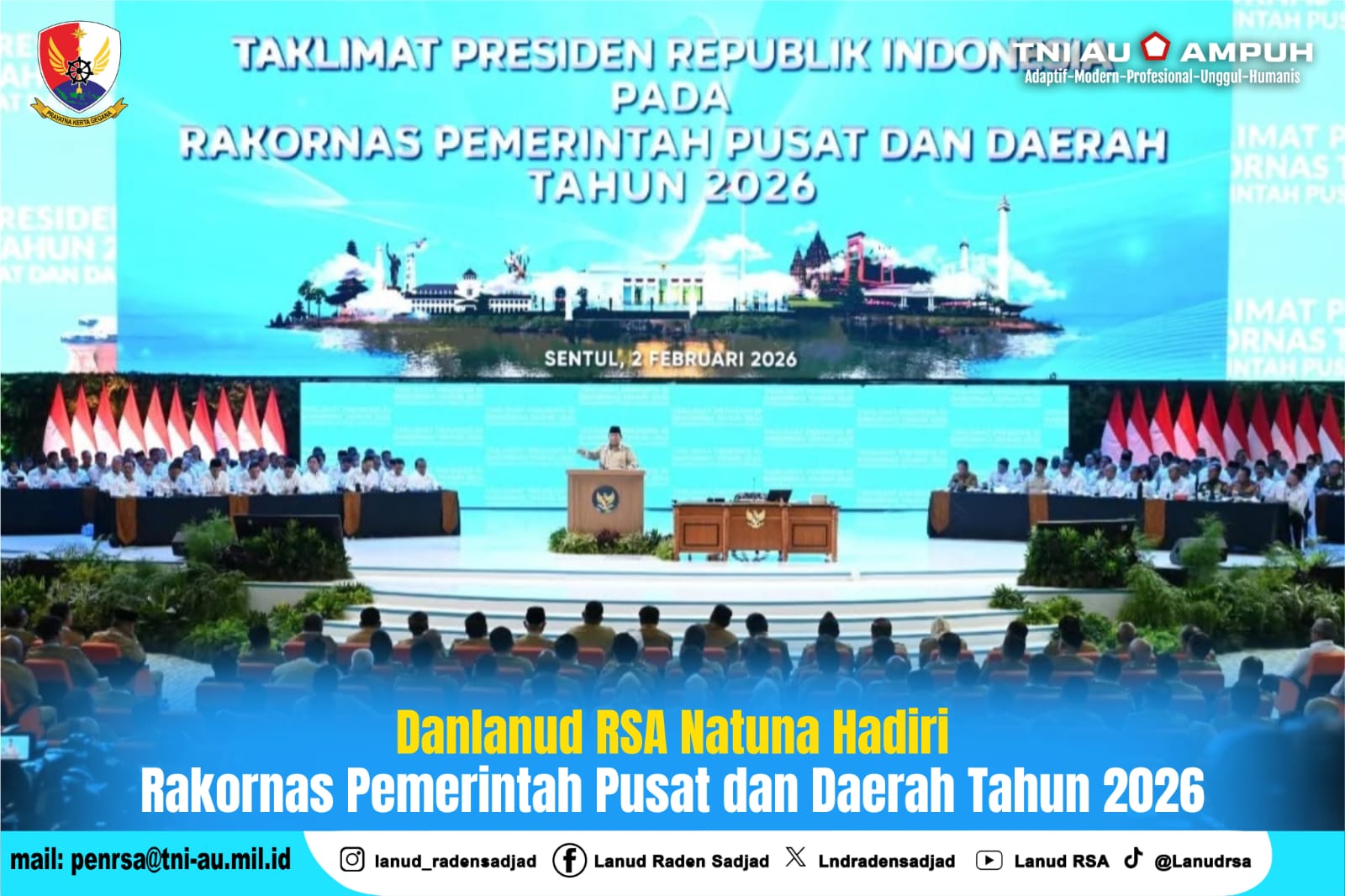 Komandan Lanud Raden Sadjad (Danlanud RSA) Natuna, Marsekal Pertama TNI Onesmus Gede Rai Aryadi, S.E., M.M., M.Han., menghadiri Rapat Koordinasi Nasional Pemerintah Pusat dan Daerah Tahun 2026 di Sentul International Convention Center, Kabupaten Bogor, Jawa Barat, pada Senin (2/2/2026).