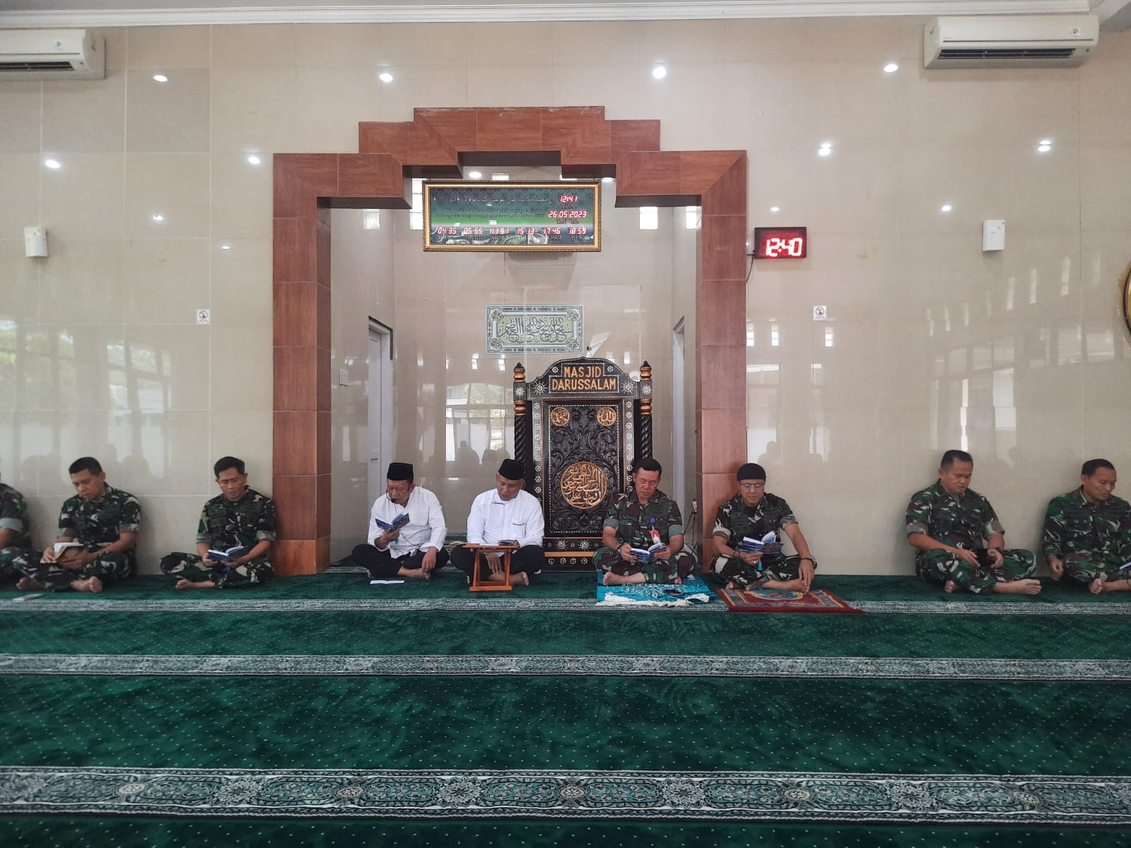 Kegiatan ini diawali dengan sholat Jumat berjamaah, kemudian pembacaan surah Yasin, dilanjutkan dengan doa bersama yang di pimpin oleh Ustad Ibnu Rohmat staf Bintal Kaskoopsud I.