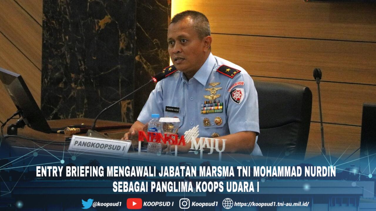 Selanjutnya salam kesempatan Entry Briefing Pangkoops Udara I Marsma TNI Mohammad Nurdin menyampaikan pengarahan perdananya ke para pimpinan Makoops Udara I maupun ke para pimpinan di jajaran Koops Udara I, dengan menjelaskan penekanan utamanyanya yaitu “TNI AU yang tangguh, superior di langit dan menjadi yang disegani dikawasan”.
