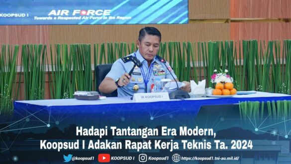 Jakarta, Penkoopsud I. Panglima Koops Udara I Marsda TNI Mohammad Nurdin dalam hal ini diwakilkan oleh Ir Koopsud I Marsma TNI Arifaini Nur Dwiyanto, M.Han secara resmi membuka Rapat Kerja Teknis (Rakernis) Koopsud I Tahun Anggaran 2024 yang bertempat di Gedung Roesmin Nurjadin, Makoopsud I, Jakarta. Senin, 4 Maret 2024.