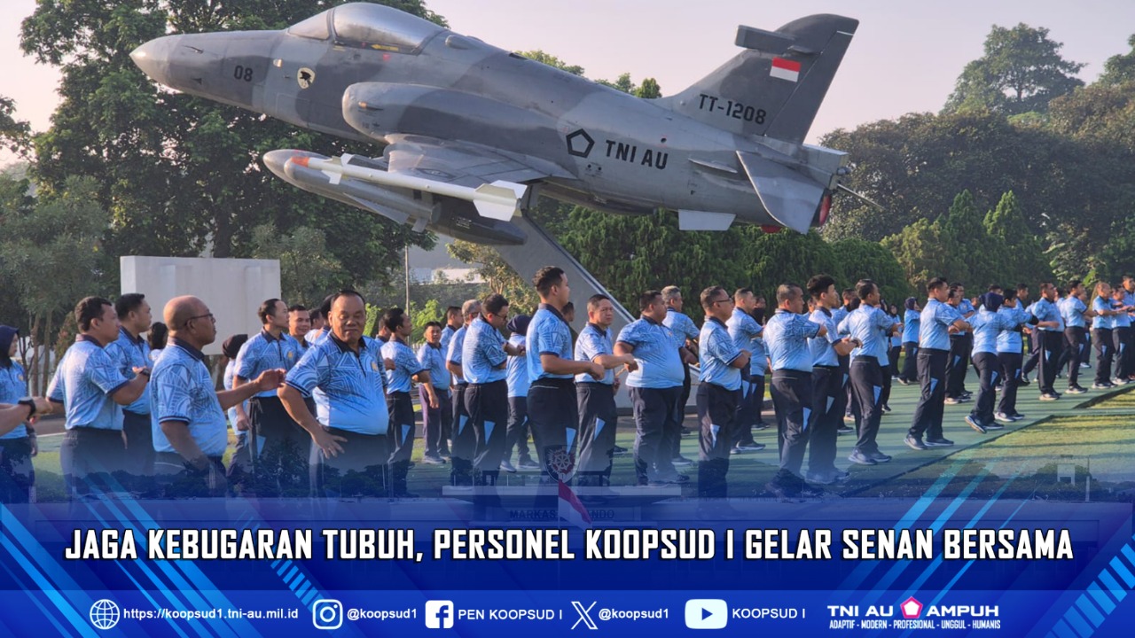 Jakarta. Penkoopsud I. Dalam menjaga dan kebugaran tubuh, personel Koops Udara I gelar senam bersama bertempat di Lapangan Apel Makoops Udara I, Jum’at (1/8/25).