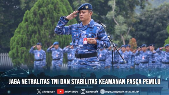 Koopsud I, Jakarta. “Para Prajurit tetap menjaga netralitas TNI dan stabilitas keamanan pasca Pemilu, dengan menjaga diri agar tidak terpancing dengan provokasi atau isu-isu yang dapat memicu konflik,” demikian cuplikan amanat Kepala Staf Angkatan Udara Marsekal TNI Fadjar Prasetyo, S.E., M.P.P., CSFA. yang dibacakan Panglima Komando Operasi Udara I Marsda TNI Mohammad Nurdin yang bertindak selaku Inspektur Upacara (Irup) pada Upacara Bendera tujuh belasan di bulan Februari yang berlangsung di Lapangan Upacara Makoopsud I. Senin 17-Feb-2024.