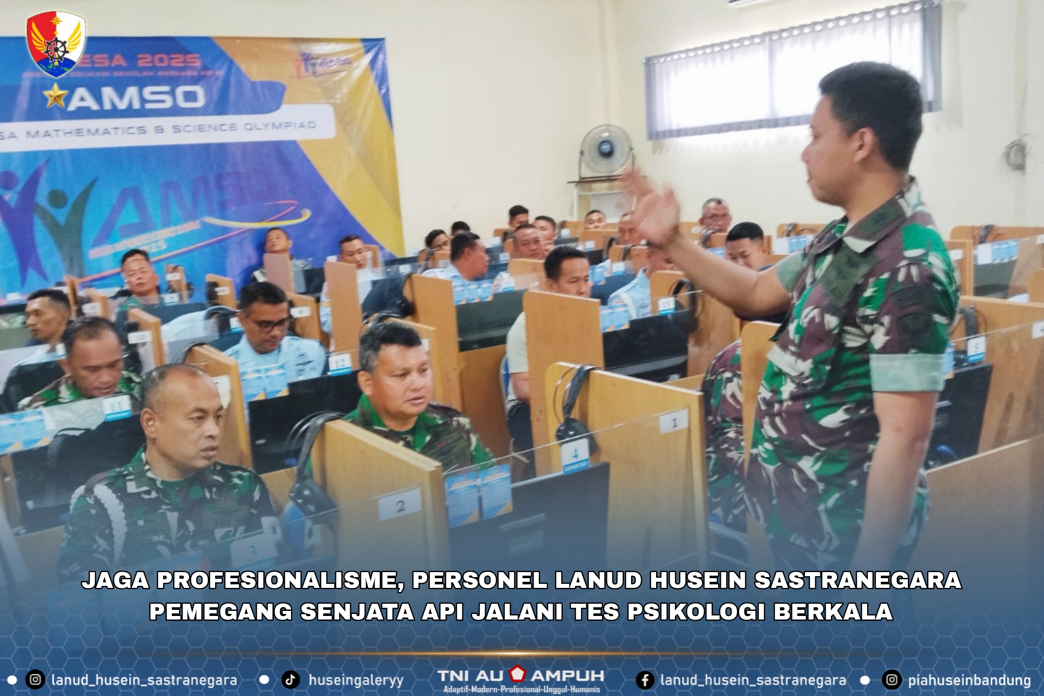 Untuk meningkatkan keamanan dan keselamatan dalam penggunaan senjata api di lingkungan Militer, personel Pangkalan TNI AU Husein Sastranegara yang memegang senjata api mengikuti tes psikologi yang dilaksanakan secara berkala. Kegiatan ini berlangsung di SMA Angkasa, Senin (20/10).