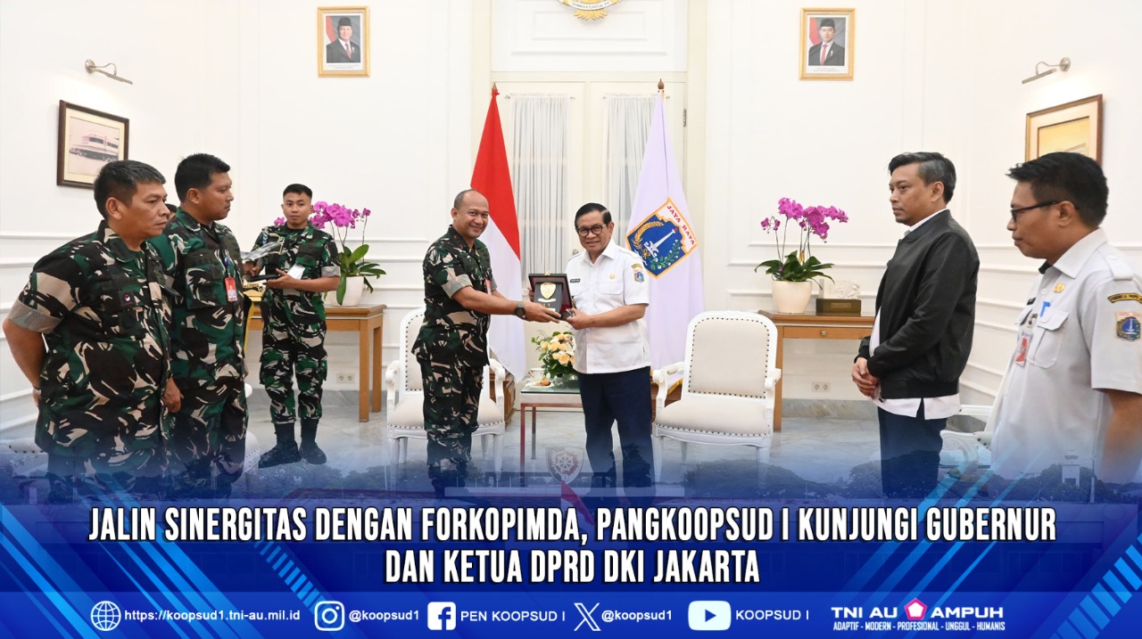 Jakarta, Penkoopsud I. Jalin sinergitas dan perkuat silaturahmi antar jajaran Forkopimda DKI Jakarta, Panglima Komando Operasi Udara I Marsda TNI Muzafar, S.Sos., M.M., mengawali kunjungan kehormatannya ke Ketua DPRD DKI Jakarta, Drs. H. Khoirudin, M.Si., yang didampingi Staf Khususnya. Bertempat di Gedung DPRD DKI Jakarta, Gambir, Jakarta Pusat. (Rabu, 18-6-2025).