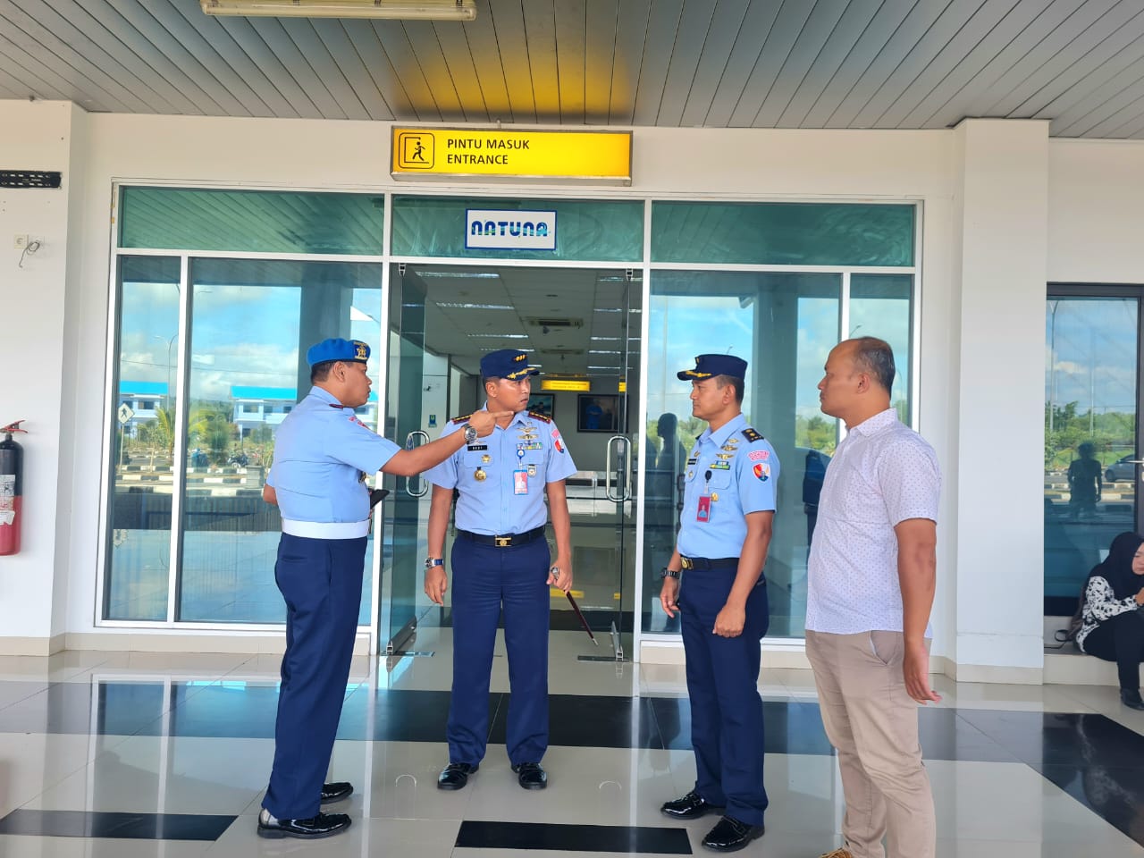 Danlanud RSA Natuna meninjau berbagai fasilitas di Bandara RSA Natuna, seperti ruang tunggu, posko kesehatan TNI AU, area check-in dan tempat X-Ray Bandara RSA.