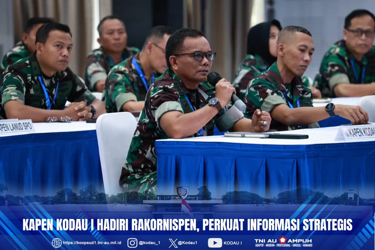 Jakarta-Penkodau I. Kepala Penerangan Komando Daerah TNI Angkatan Udara I (Kapen Kodau I) Kolonel Sus M.Zukri, S.Ag., hadiri Rapat Koordinasi Teknis Penerangan (Rakornispen) diselenggarakan oleh Dispenau yang dibuka secara langsung oleh Asintel Kasau Marsma TNI Jatmiko Adi, bertempat di Gedung Serbaguna Harnoko Harbani, Cilangkap, Jakarta Timur, Rabu (11/3/26).