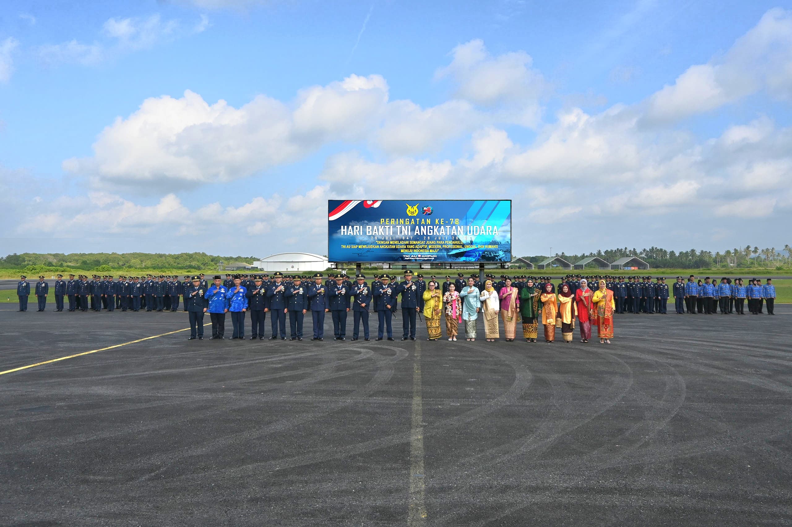 Upacara peringatan ke-78 Hari Bakti TNI Angkatan Udara digelar di Main Apron Lanud Raden Sadjad (Lanud RSA) Natuna, Provinsi Kepulauan Riau, Selasa (29/7/2025). Kegiatan ini berlangsung khidmat dan menjadi wujud penghormatan atas jasa para pahlawan dirgantara.