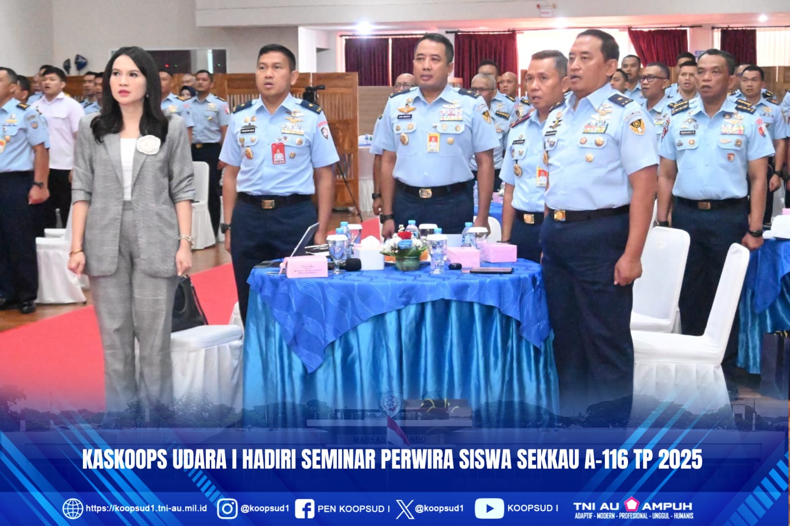 Jakarta, Penkoopsud I. Kepala Staf Koops Udara I Marsma TNI Prasetiya Halim, S.H., hadiri seminar Perwira Siswa Sekolah Komando Kesatuan TNI Angkatan Udara (Pasis Sekkau) A-116 TP 2025, bertempat di Gedung Pramanasala, Mako Sekkau, Halim Perdanakusuma. (Kamis, 31-7-2025).