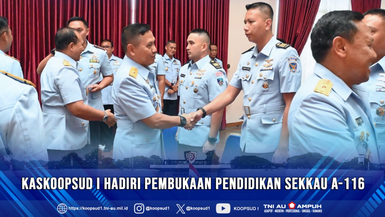Jakarta, Penkoopsud I. Mewakili Panglima Koops Udara I, Kaskoops Udara I Marsma TNI Prasetya Halim, S.H., hadiri pembukaan pendidikan Sekkau A-116 TA 2025, bertempat di Gedung Pramanasala Sekkau, Senin (5-5-2025)