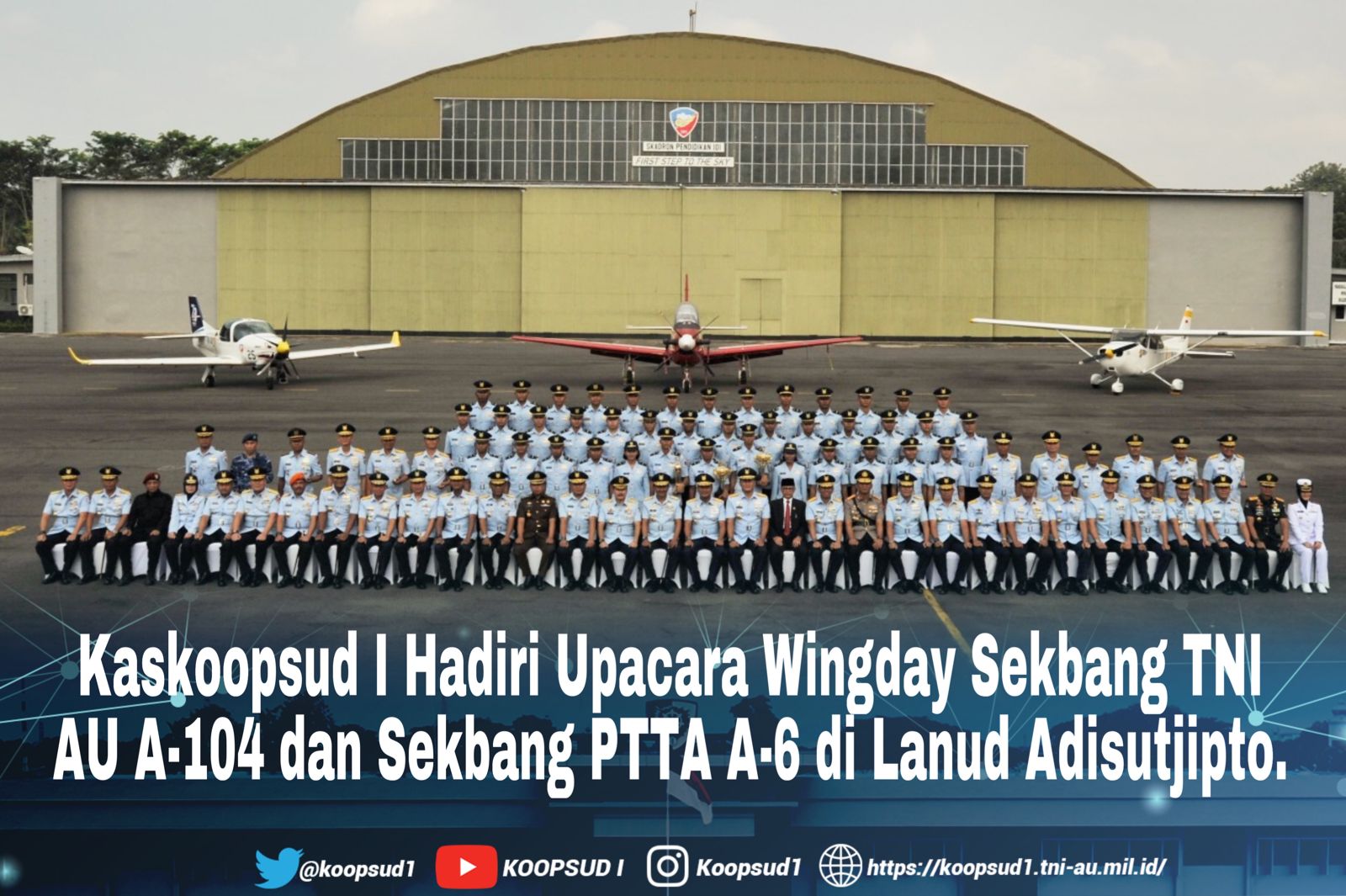 Penkoopsud I. Kaskoopsud I Marsma TNI Daan Sulfi, S.Sos., M.Si., M.Han., mewakili Pangkoopsud I Marsda TNI Mohammad Nurdin, menghadiri upacara Wingday Sekolah Penerbang (Sekbang) TNI AU A-104 dan Sekolah Penerbang PTTA A-6, yang dilaksanakan di Lapangan Jupiter Mako Lanud Adisutjipto, Yogyakarta. (Kamis, 30-5-2024).