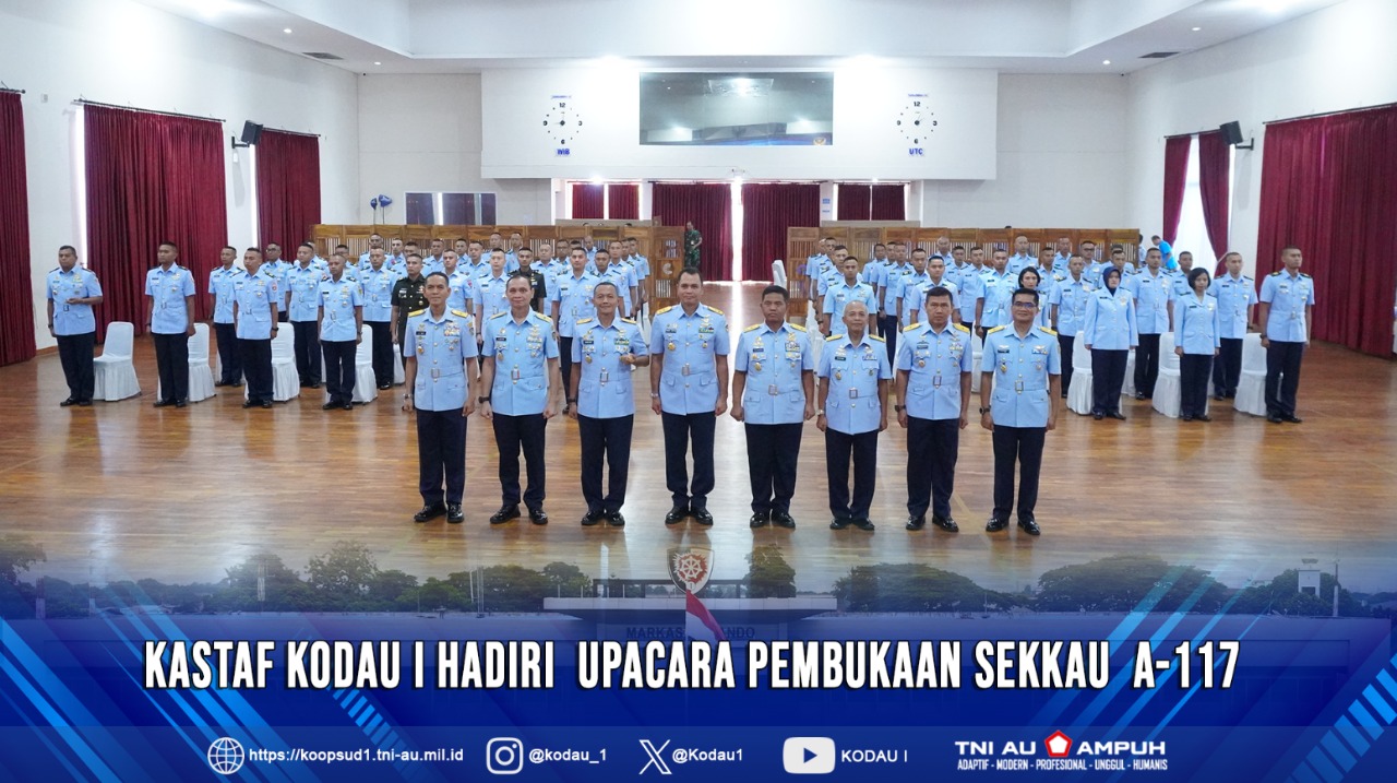Kepala Staf Komando Daerah TNI Angkatan Udara I (Kastaf Kodau I) Marsma TNI Prasetiya Halim, SH., turut menghadiri upacara pembukaan pendidikan Sekkau A.-117 TA. 2025, yang dilaksanakan di Gedung Pramanasala Sekkau, Senin (1/9/25).