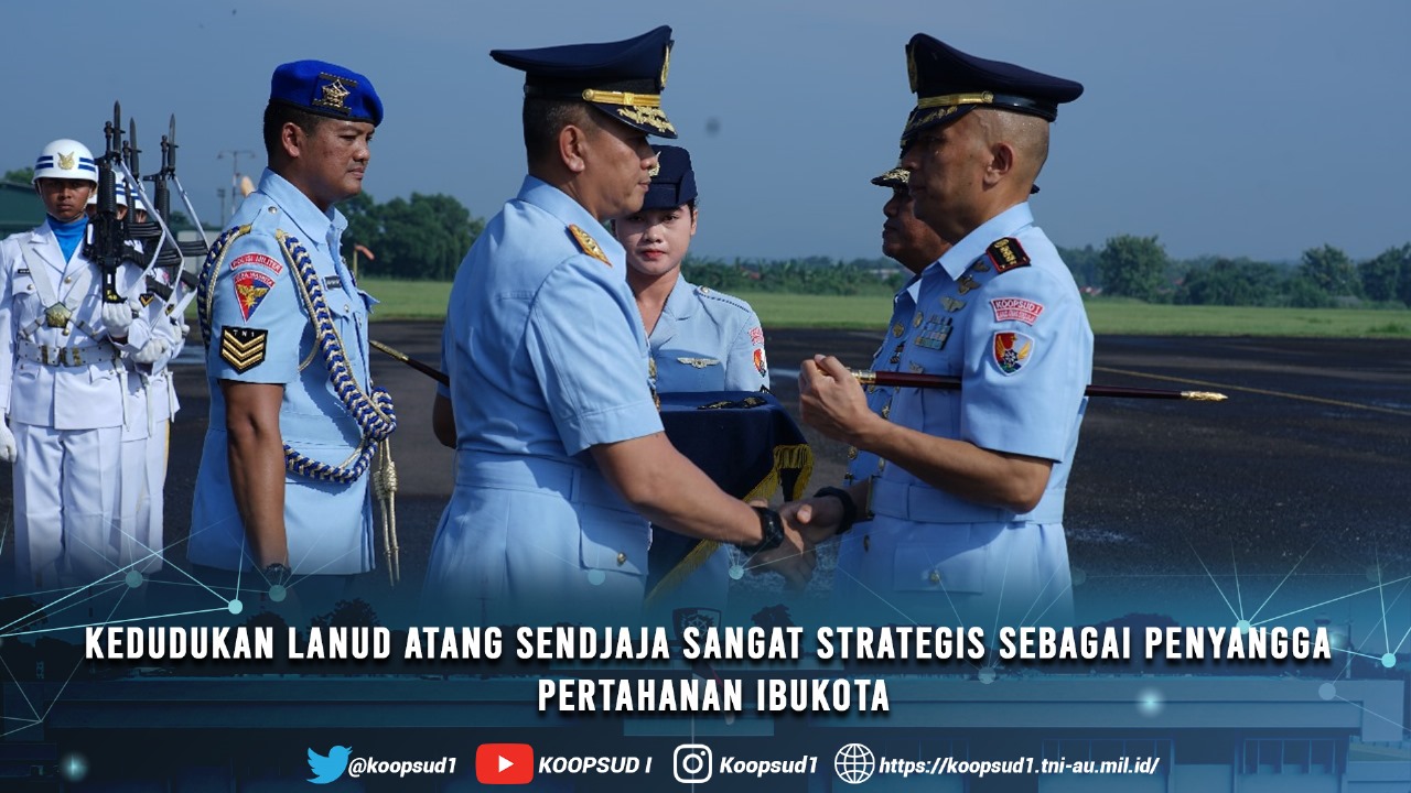 Jakarta, Penkoopsud I. “Sebagai salah satu Lanud yang berada di jajaran Koops Udara I, kedudukan Lanud Atang Sendjaja bagi kepentingan pertahanan negara memiliki nilai yang strategis sebagai penyangga Ibukota, dan juga salah satu pangkalan induk pesawat helikopter kebanggaan TNI AU” demikian ditegaskan oleh Pangkoops Udara I Marsda TNI Mohammad Nurdin, saat memimpin upacara serah terima jabatan Komandan Lanud Atang Sendjaja dari Marsma TNI M. Taufiq Arasj, S.Sos., selanjutnya menjadi Waasops Panglima TNI kepada Kolonel Pnb Juli Heryanto Ginting, S.Sos., sebelumnya menjabat Paban II/Jianevallat Ditjian Kodiklatau. Bertempat di Lapangan Upacara Mako Lanud ATS. (Jumat, 19-4-2024).