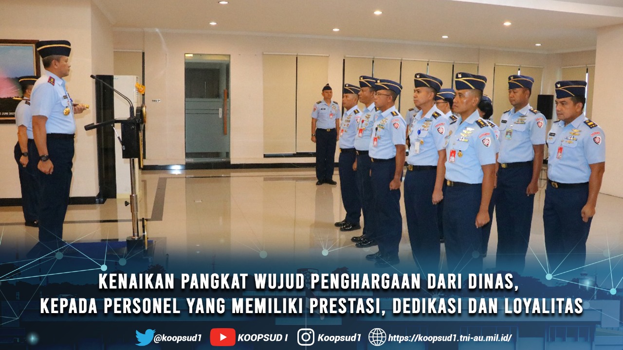 Lebih lanjut Pangkoops Udara I yang mewakili segenap warga Makoops Udara I mengucapkan “Selamat dan turut bersyukur kepada seluruh personel Makoops Udara I yang mendapatkan kenaikan pangkat, disertai harapan semoga menjadi motivasi dalam pengabdian pada tugas-tugas yang saudara atau saudari emban, sesuai bidang profesi dan korps masing-masing, serta dapat meningkatan etos kerja yang lebih profesional, berkualitas, kreatif, inovatif serta produktif“ ujar Alumni AAU ’96.