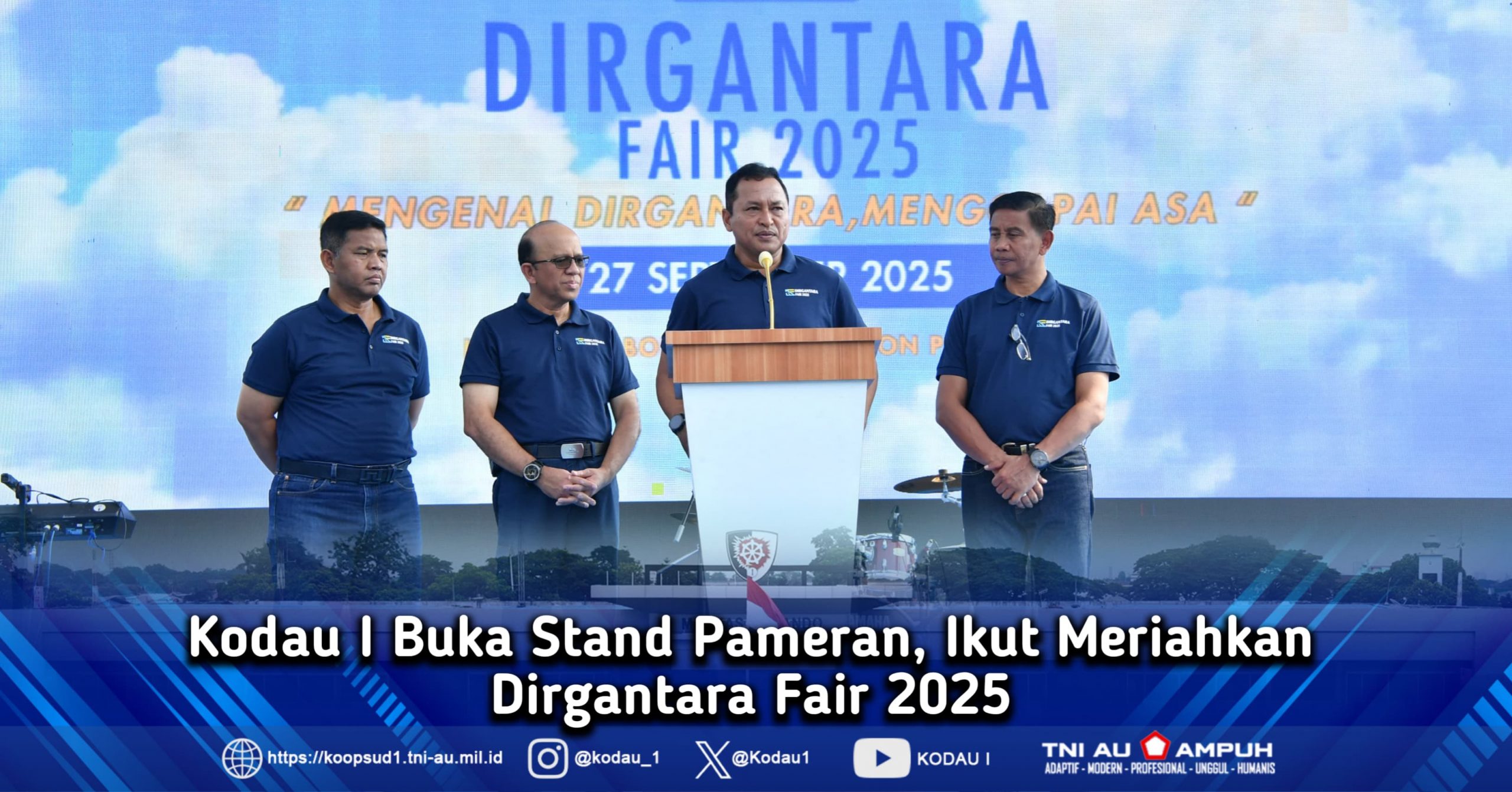 Jakarta. Penkodau I. Komando Daerah TNI Angkatan Udara I (Kodau I) ikut memeriahkan Dirgangara Air Fair 2025 dengan menyuguhkan alutsista, ketahanan pangan dan lain sebagainya, Panglima Kodau I Marsda TNI Muzafar, S.Sos., M.M., turut menghadiri Pameran Dirgantara Fair 2025 yang dibuka oleh Kepala Staf Angkatan Udara Marsekal TNI M.Tony Harjono, S.E., M.M., di lapangan Aldiron, Pancoran Jakarta Selatan, Sabtu (27/9/25).