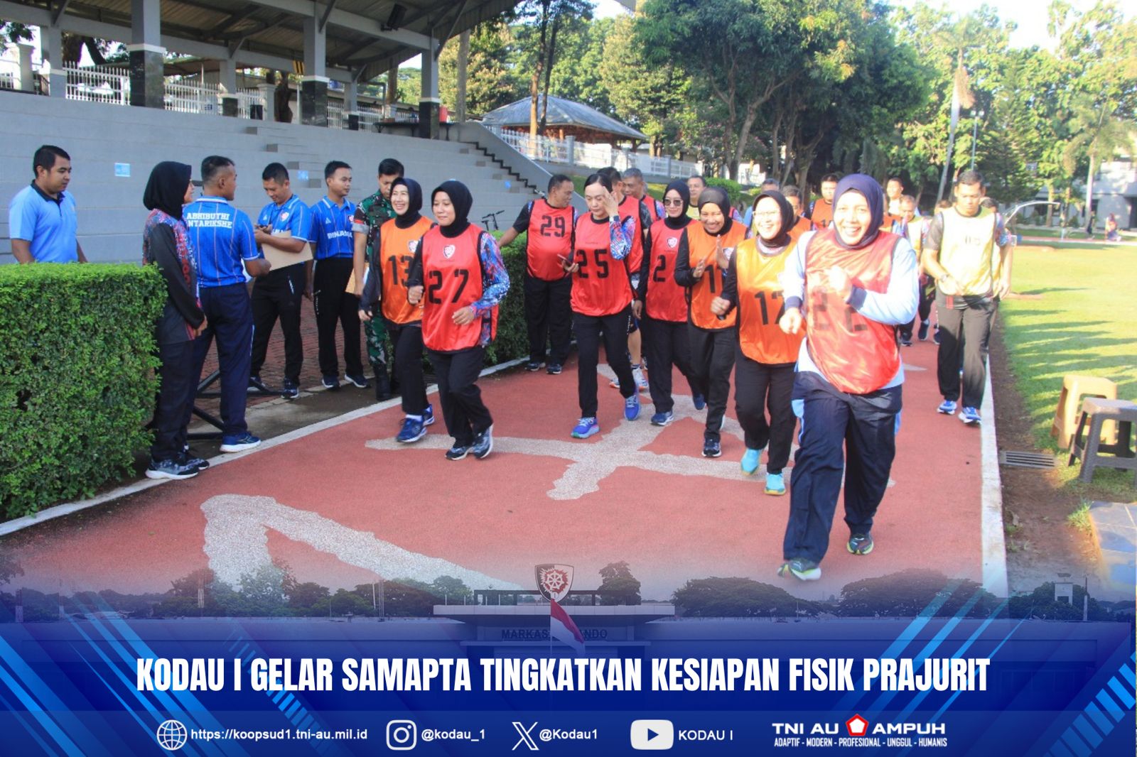 Dalam rangka menjaga dan meningkatkan kebugaran jasmani prajurit, Komando Daerah TNI Angkatan Udara I (Kodau I) melaksanakan kegiatan samapta yang diikuti oleh seluruh Perwira Menengah(Pamen) dan Perwira Pertama(Pama) bertempat diLapangan Galaxy Makodau I, (Selasa, 4-11-2025)