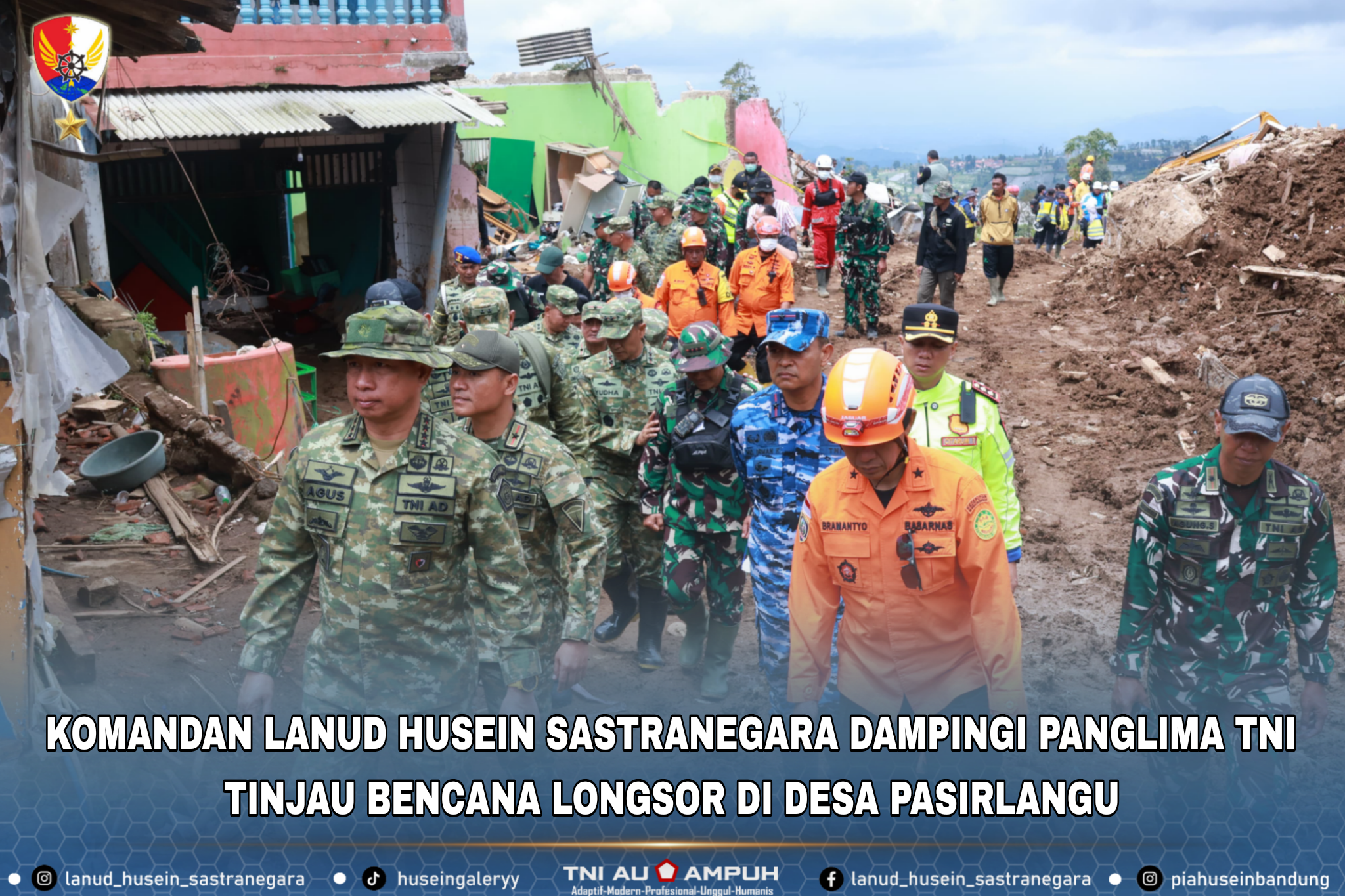 Komandan Lanud Husein Sastranegara Dampingi Panglima TNI Tinjau Bencana Longsor di Desa Pasirlangu