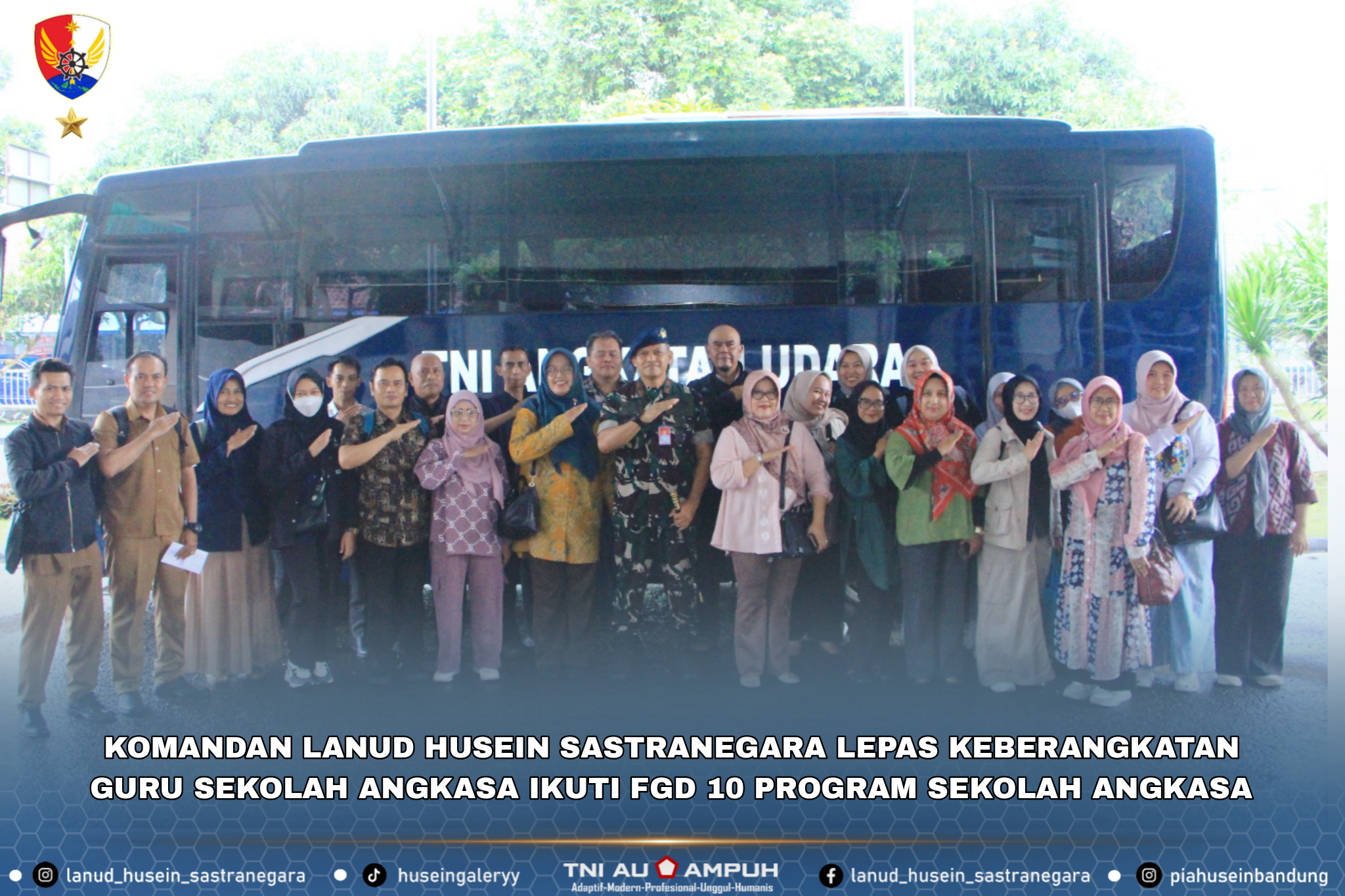 Bandung – Komandan Lanud Husein Sastranegara, Marsma TNI MD. Irman Fathurrahman, S.E., M.M., secara resmi melepas keberangkatan guru-guru Sekolah Angkasa yang akan mengikuti Forum Group Discussion (FGD) bertema “10 Program Unggulan Sekolah Angkasa” di Pusat Bahasa Kodiklatau Jakarta, Senin (20/10).