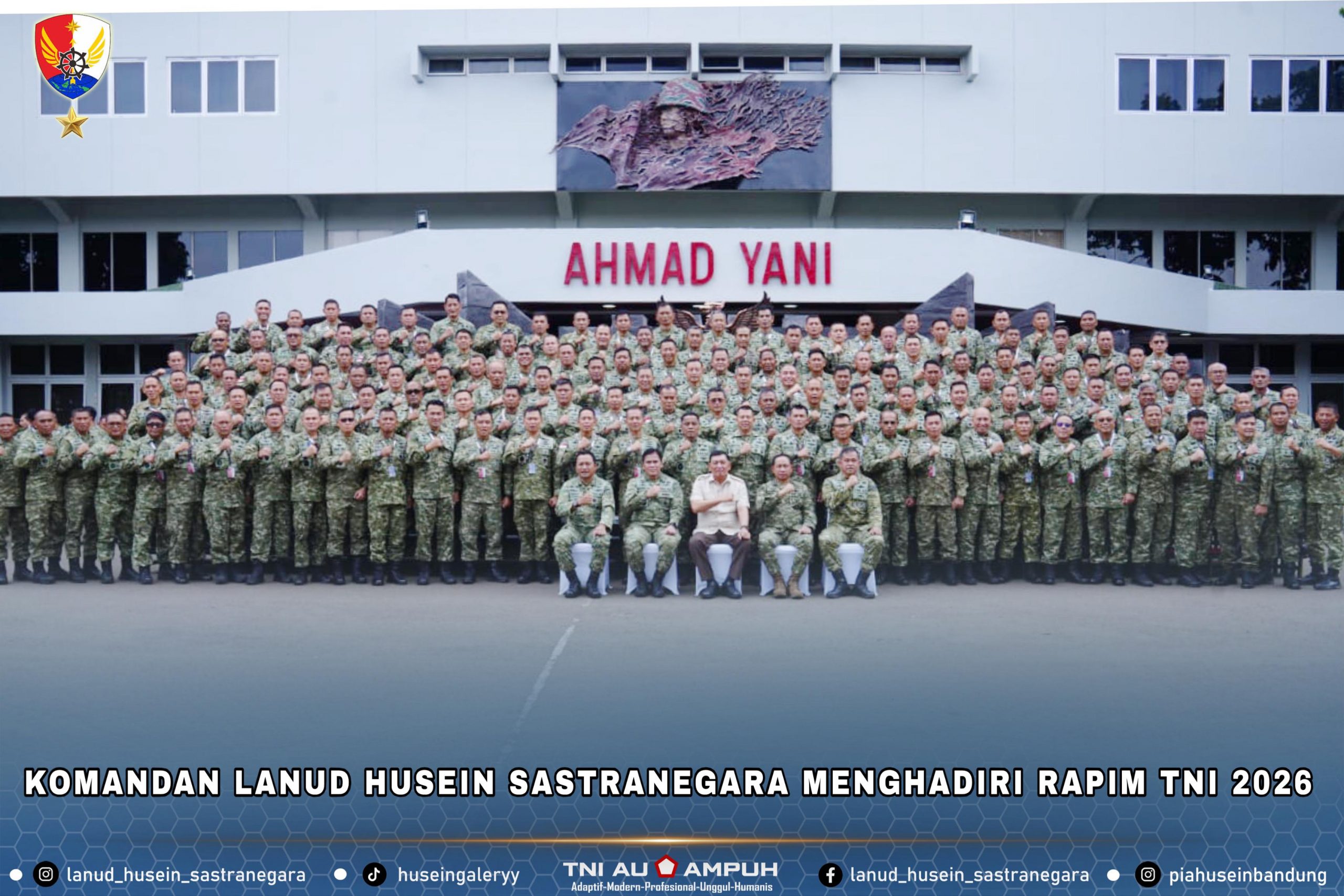 Komandan Lanud Husein Sastranegara Marsma TNI MD. Irman Fathurahman, S.E., M.M., Menghadiri Rapat Pimpinan (Rapim) TNI Tahun 2026 yang digelar di GOR A. Yani, Mabes TNI, Cilangkap, Jakarta Timur, Selasa (10/2/2026).